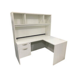 L-Shaped Desk With Hanging Pedestal and Open Hutch