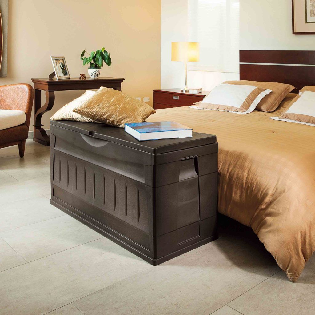 “RIMAX” Deck Storage Box offers a spacious interior perfect for organizing and storing belongings. Interior capacity is 83.2 gallons. Durable resin material is easy to clean as well as rust, stain and scratch resistant. Its modern design is perfect for indoor or outdoor use, and 2 casters make it easy to move this unit. It also features 2 side handles and a lockable lid (lock not included). Assembly required.