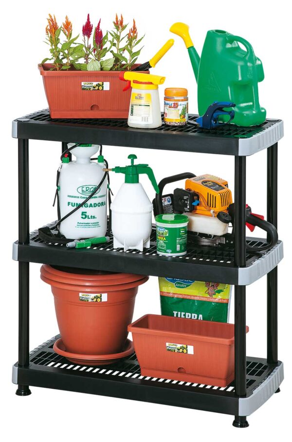 “RIMAX” Heavy Duty 3-Tier Storage Shelving Unit made from polypropylene resin. Open shelves allow plenty of room for storage. Heavy-duty Resin construction is rust, stain and scratch resistant. East Assembly, no tools required. Holds up to 99 lbs. per shelf when evenly distributed, and can be anchored to a wall. Assembly required.