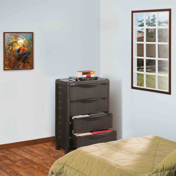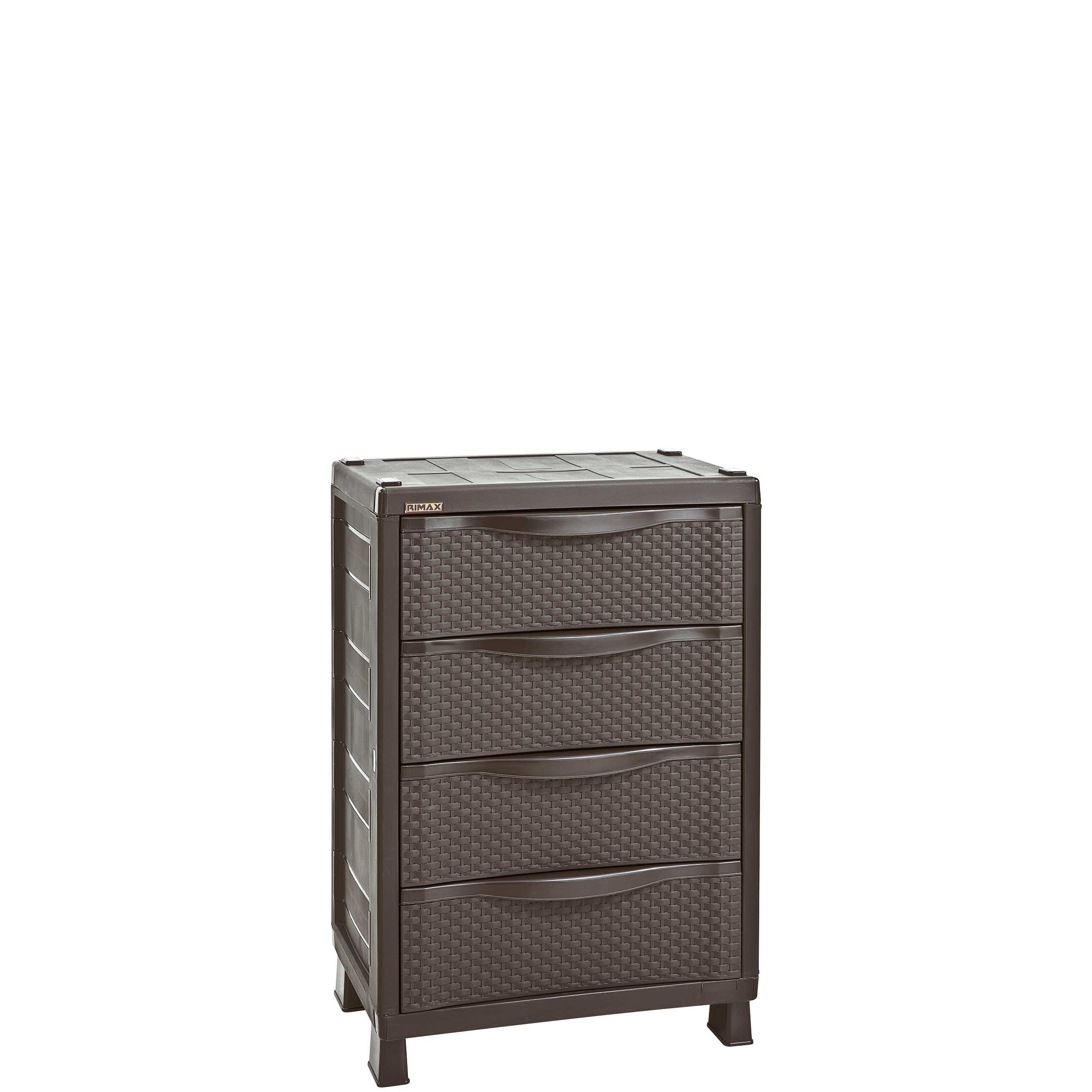 “RIMAX” 4-Drawer Cabinet made of resin with a beautiful rattan look. It offers a large storage capacity with 4 spacious drawers. It is easy to assemble, clean and move. Durable resin material is stain and scratch resistant. Assembly required.