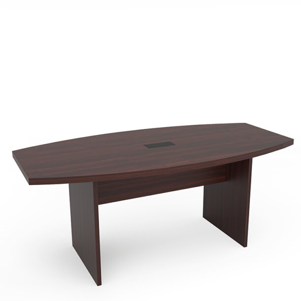 6 Foot Boat-Shaped Conference Table features an attractive and durable laminate surfaces with 3 mil PVC Tough Edge for superior durability. Boat-Shaped style features 1-1/2” thick tops and bases.
