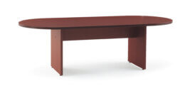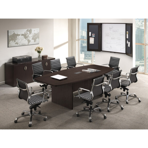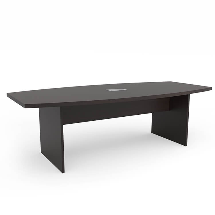 8 Foot Boat-Shaped Conference Table features an attractive and durable laminate surfaces with 3 mil PVC Tough Edge for superior durability. Boat-Shaped style features 1-1/2” thick tops and bases.