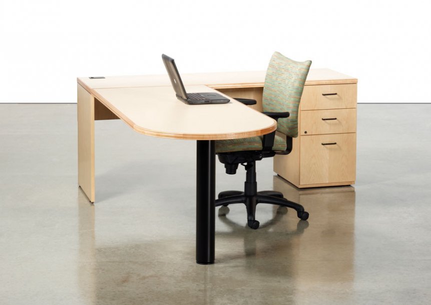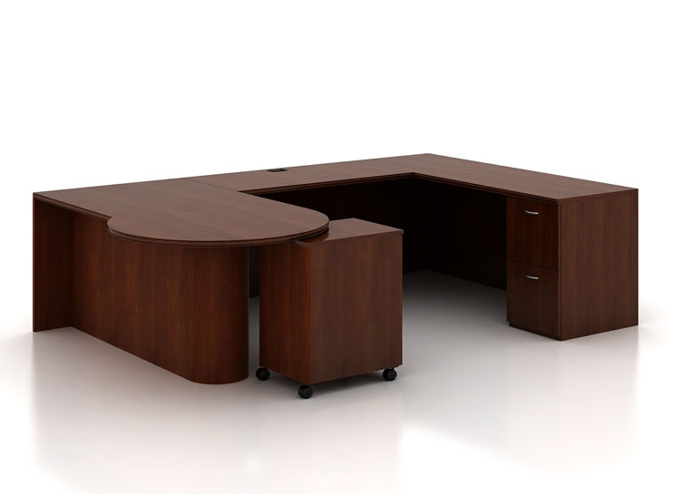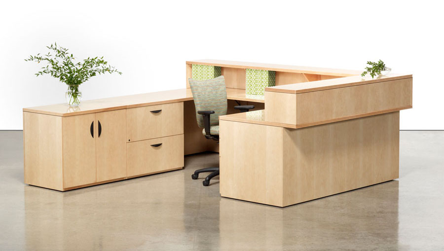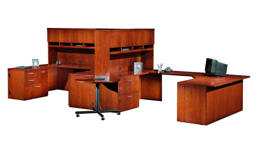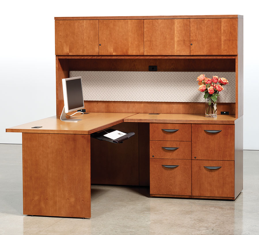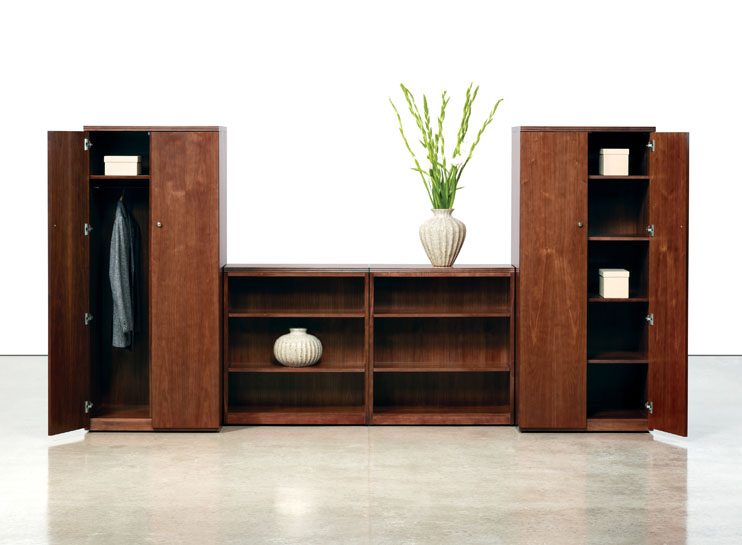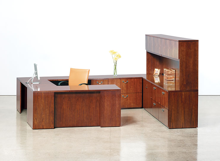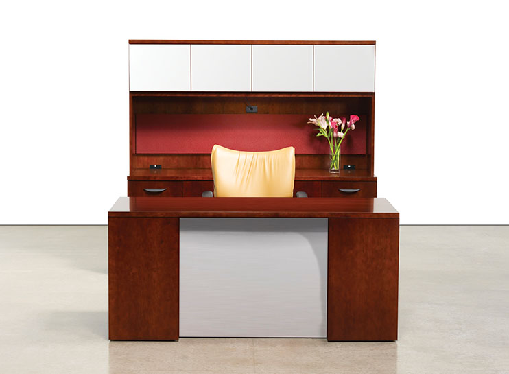 A modular line of contemporary office furniture, A La Carte offers an extensive and flexible collection of casegoods to fit your office needs. The wood desk and credenza are available in walnut, cherry, maple, and oak. There are five edge details and pull options to pick from. This popular line of wood furniture deserves a serious look.