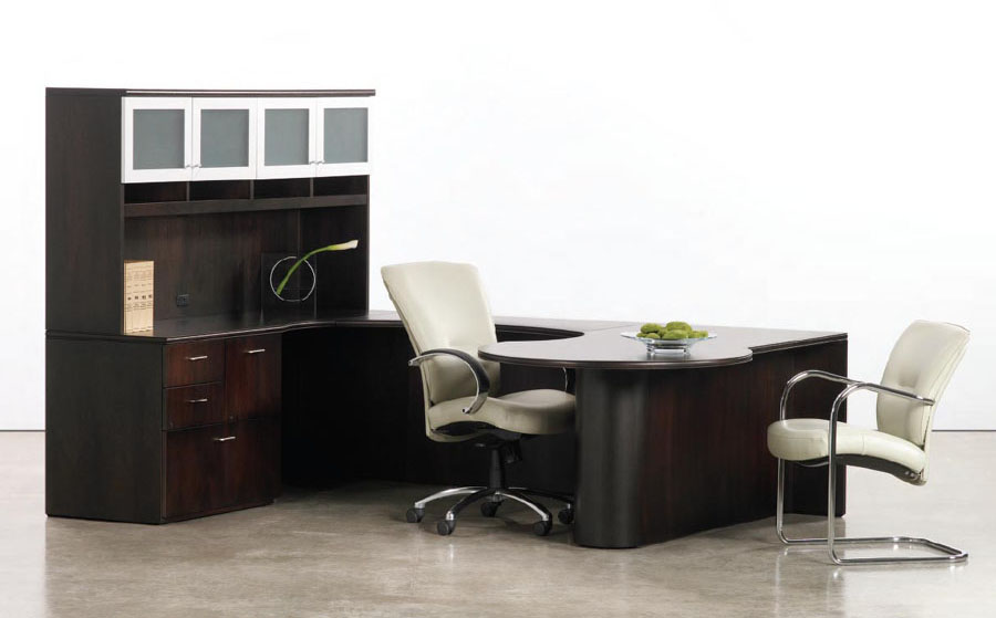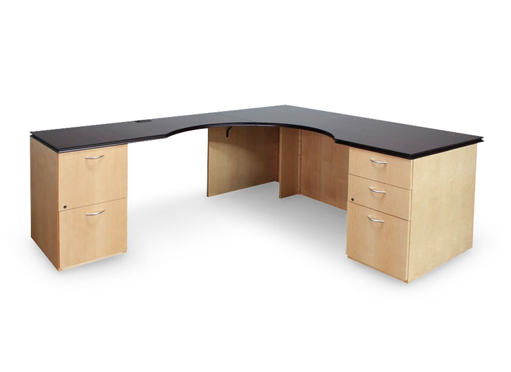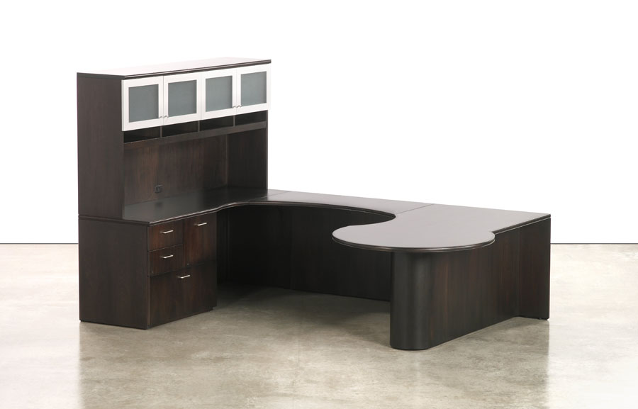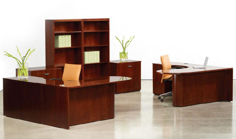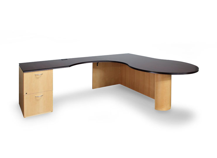 The A La Curve line of contemporary office furniture is very comparable to A La Carte, except that it offers several different types of curves, which give the furnishings a smooth, airplane cockpit feel. The A La Curve wood desk is available in walnut, cherry, and maple. You can select from the same edge detail and pull options as a la carte.
