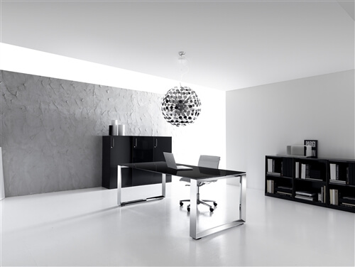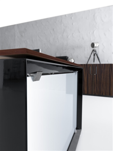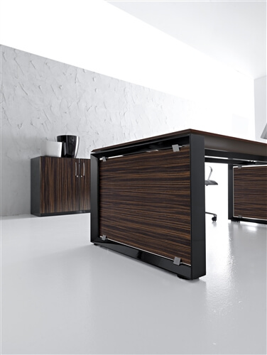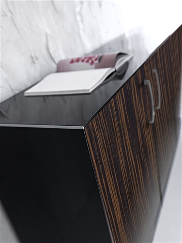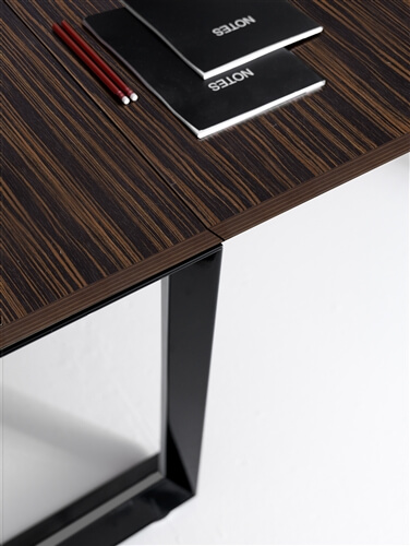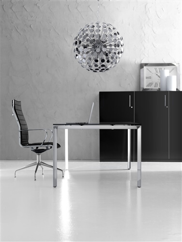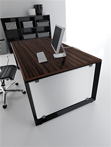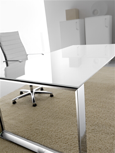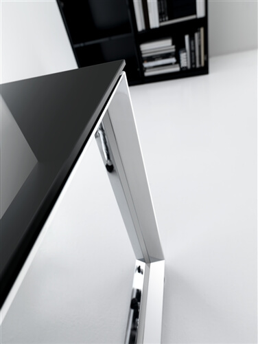 It is also available a mm 10 thick glass version in etched glass or black glass and veneer version in ebony and canaletto natural. The tops are fixed to the structure through brackets which keep the top mm 8 higher than the leg. The program includes connection and sharing of the work tops in length (160-320-480) and depth (60-80-120-160) with lower costs.