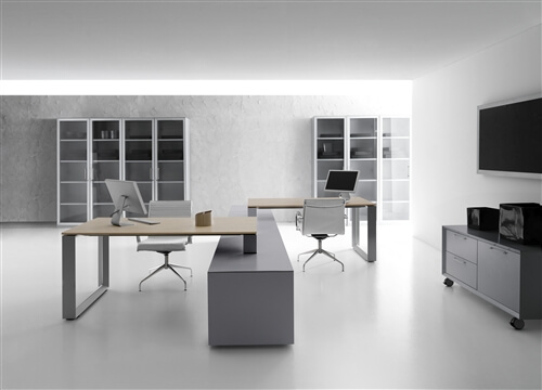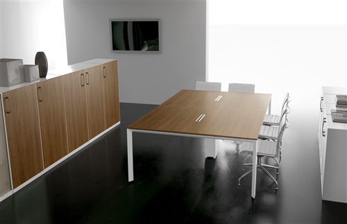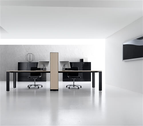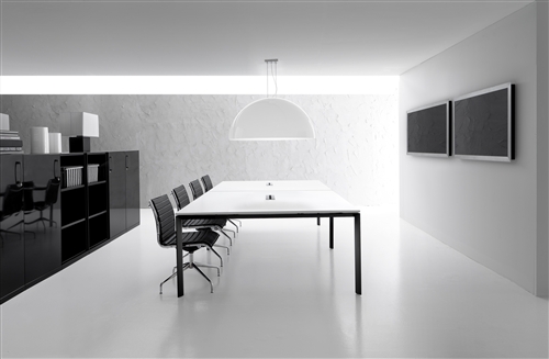 The modularity and versatility make Agorà both ope- rative and executive range, depending on the materials and finishings chosen for the tables and the structures.