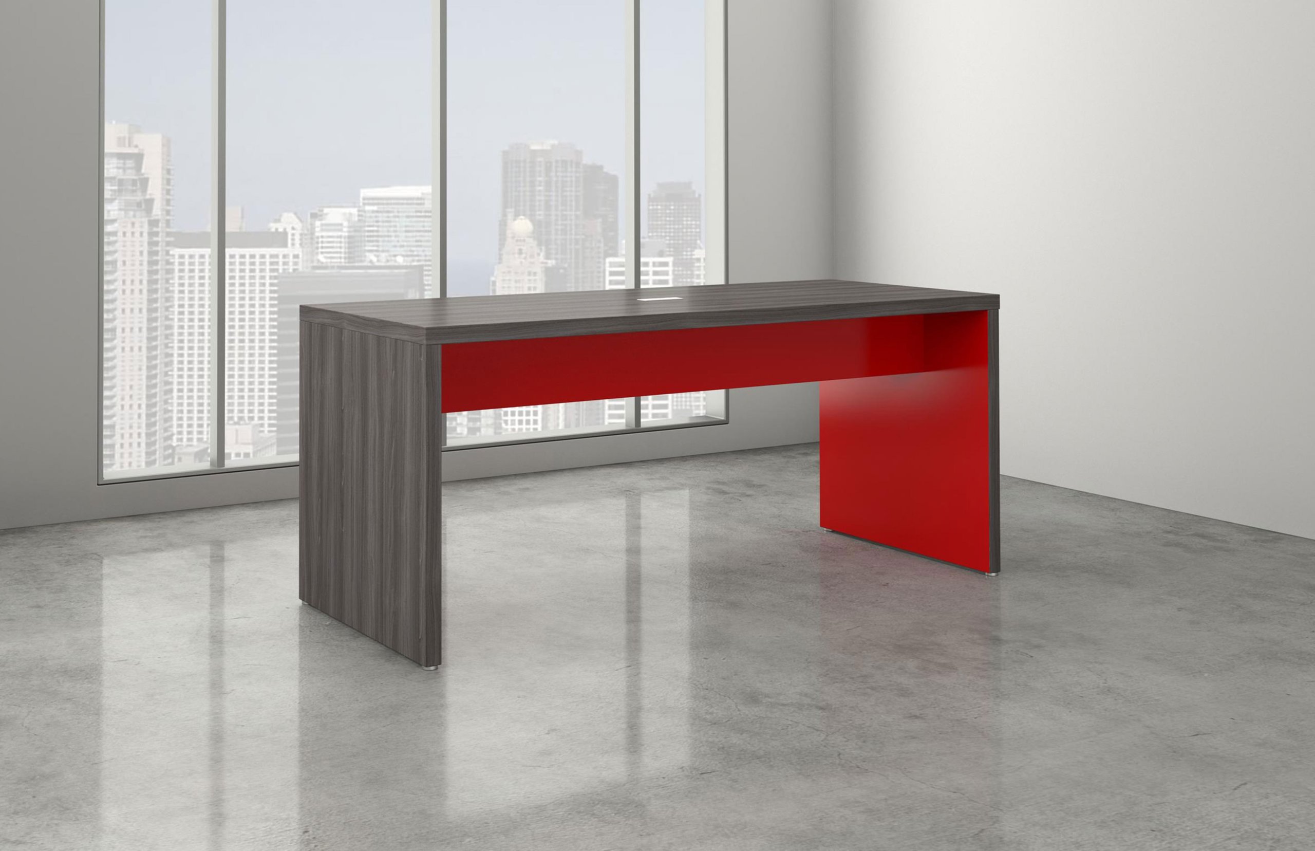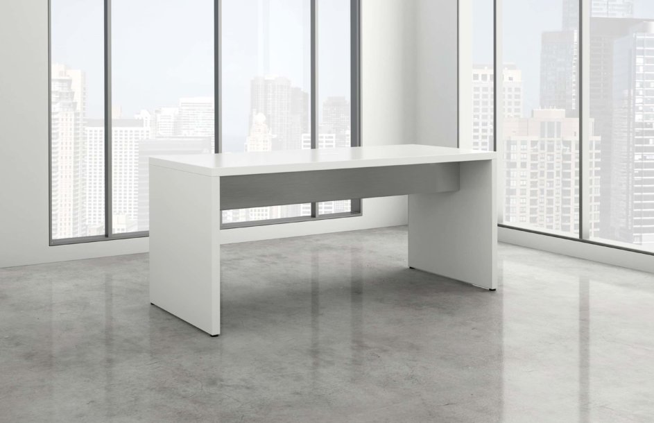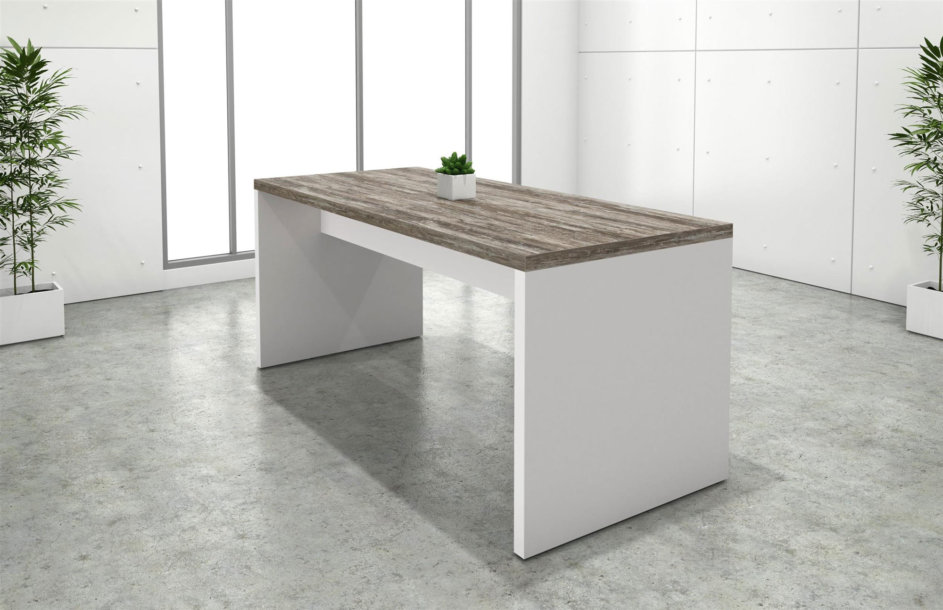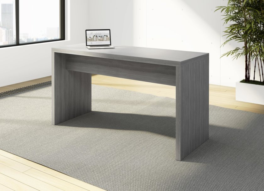Parsons table featuring 1-7/8” thick panels with DeskMakers standard 2mm PVC edge Banding. Top over end panel construction, 12” high dual stretchers, and available in both standing and desk heights. (Formally Grade 2)