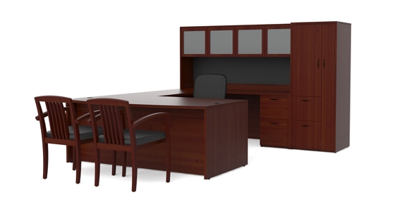 Consists of desks, returns/bridges, bridge/knee-space credenzas, pedestals, hutches, door storage, bookcases, lateral files, wall mounted storage, conference tables, presentation boards and privacy screens.