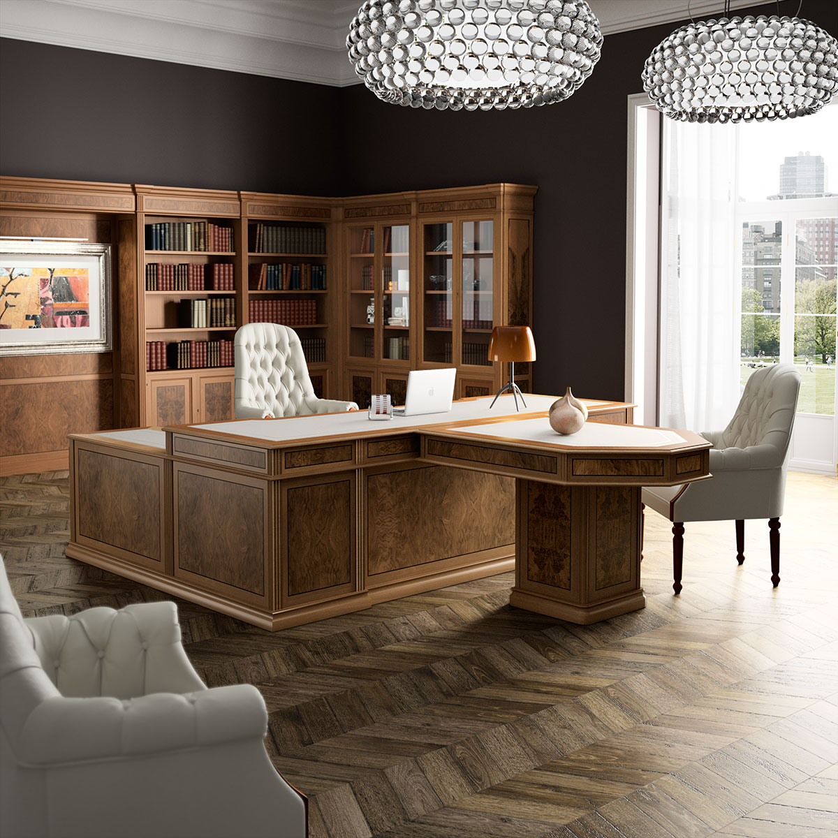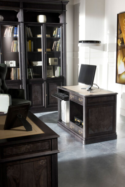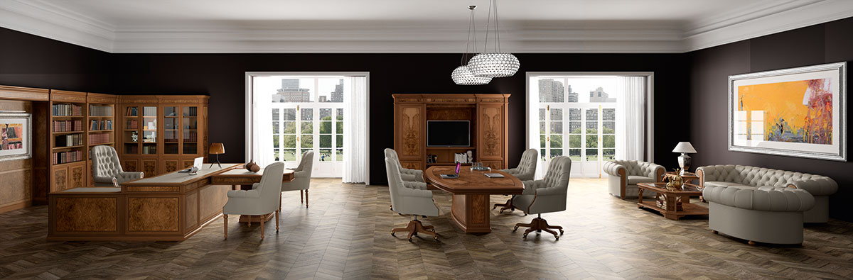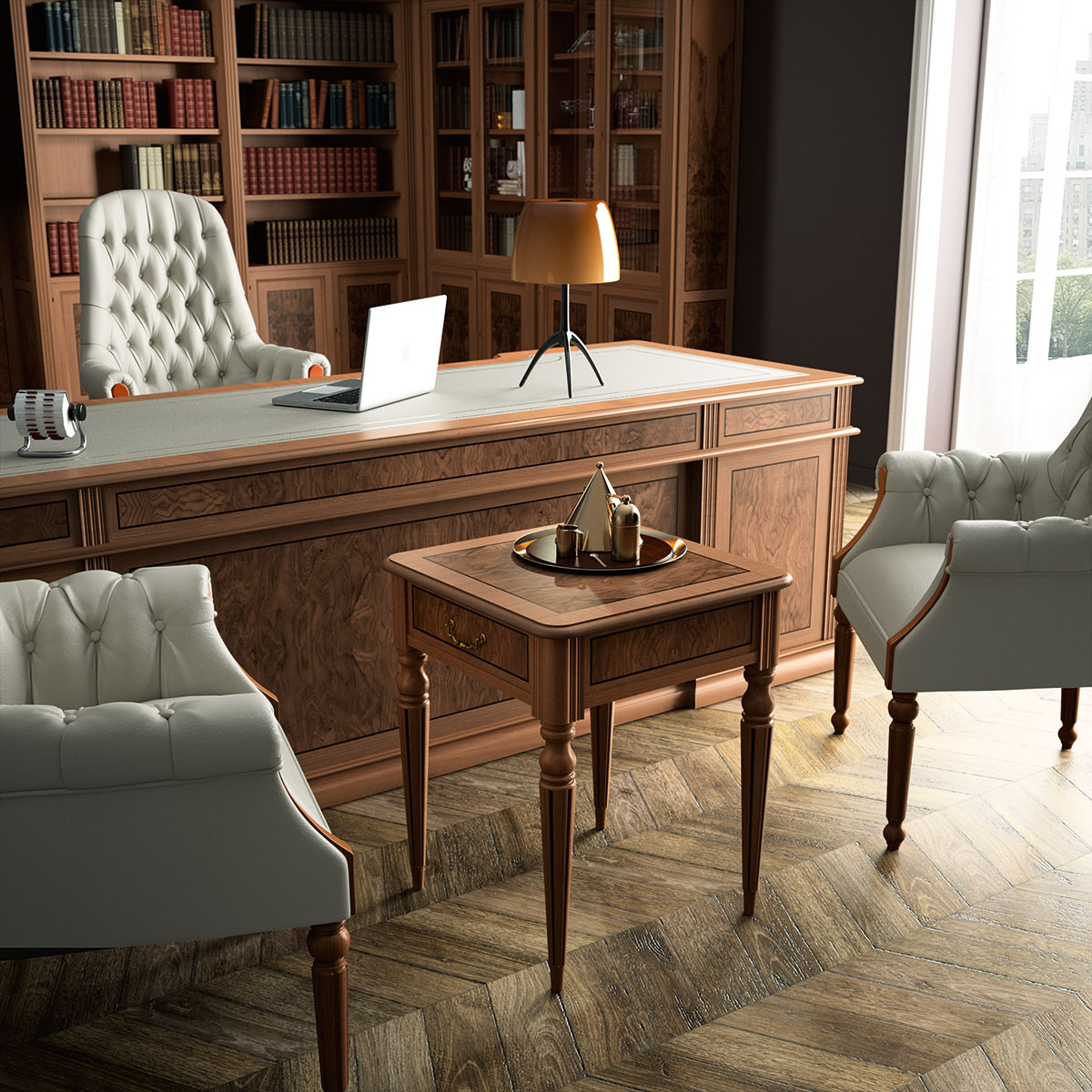 The classic office is the one that goes beyond the time barrier and where the furniture acquires a life of its own. The classic office goes beyond the groundbreaking character, it is the office where the taste, the senses, the feelings and the harmony are noticed and acquire value. The tradition of marquetry, cabinetmaking, saddlery, words that evoke the ancient craftsmen, added to the current technology and the knowledge of experts in works of great tradition and prestige, together with a selection of the finest raw materials, make it possible to have the ideal elements for the creation of our classic collections. Timeless, contemporary and classic works. The value of detail, textures and materials. An artistic artisan spirit that is embodied in creations where the tradition of the cabinetmaking of Ofifran manifests its know-how to offer furniture with all the functional demands that are currently demanded and that at the same time furniture means a status that values luxury, exquisite, the distinction, the elegance and the delicacy to highlight the spaces.