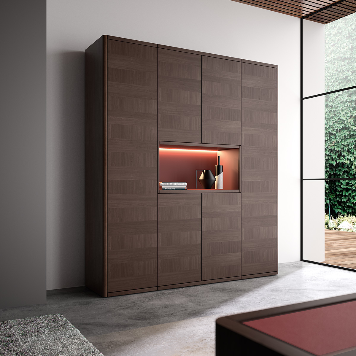 A status through refinement, thus creating a new luxury that allows the expression of the individuated self. A wooden frame collects the leather that molds the elegant and suggestive upholstery.
