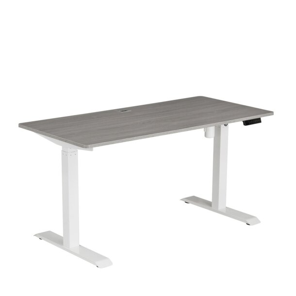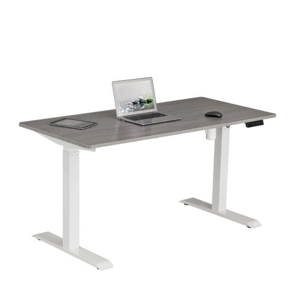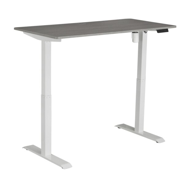 This electric height adjustable desk offers an easy transition from sitting to standing in just seconds. Raise your desk to 48-inches high and find your perfect sit-to-stand ratio at the touch of a button. Features a quality crafted steel frame that easily supports up to 100 pounds of work materials. The benefits of a desk like this help you improve focus, enhance collaboration, increase productivity, and boost calorie burn. Sit to stand desk design lets you smoothly transition between a variety of ergonomic desk positions with a fast and effortless pneumatic height adjustment. The digital memory keypad stores up to four heights, allowing you to switch between sitting and standing with a quick touch of a button. Color: Grey.