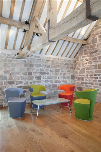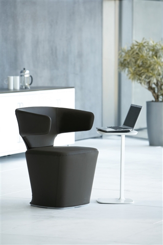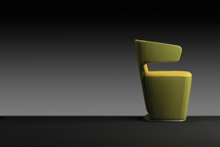 For such a compact chair it provides a deceptively generous and comfortable sit, due in part to the subtle flexing of the arms, backrest and sprung seat. The moulded foam seat and back form, both elegant and striking, are enhanced by superb upholstery detailing.
