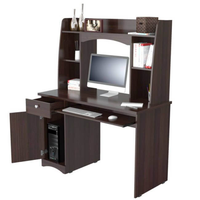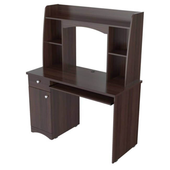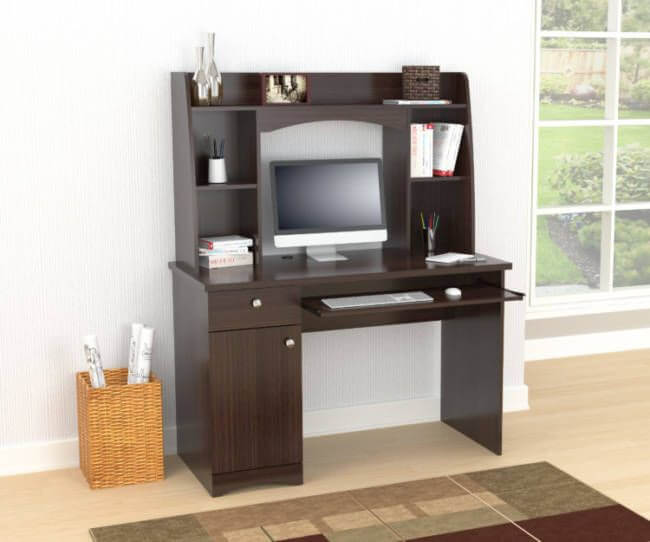 Jansee Workstation w/Hutch Collection by Inval® finished in a rich “Espresso” laminates in durable melamine which is stain, heat and scratch resistant. Constructed from manufactured wood. This is just the right desk to accommodate both your work tools with plenty of storage space. The desk features a top left drawer for your office supplies and a bottom concealed door for storage of your CPU or other office essentials. A cable management pass-through feature keeps all cords organized. Both the laminates and design make it ideal for staging and decorating your home office or office.