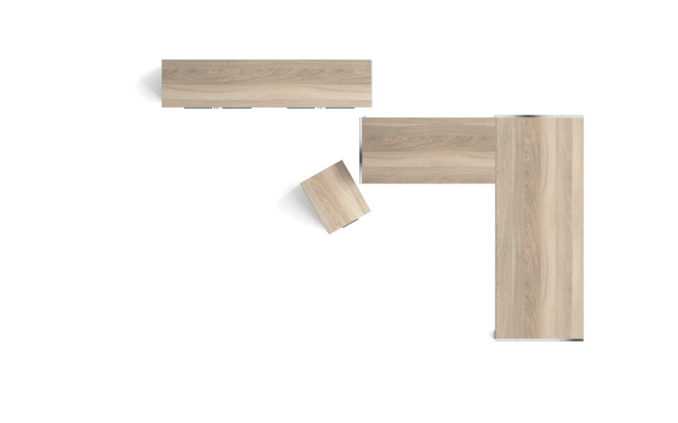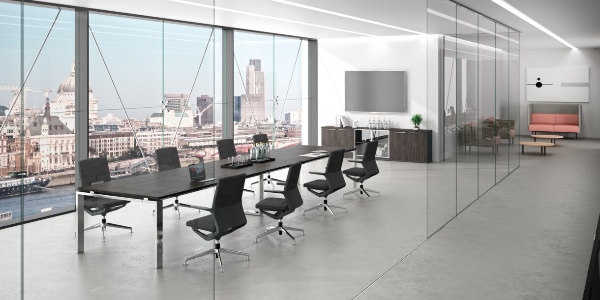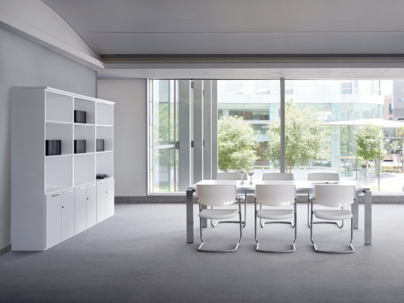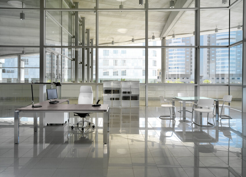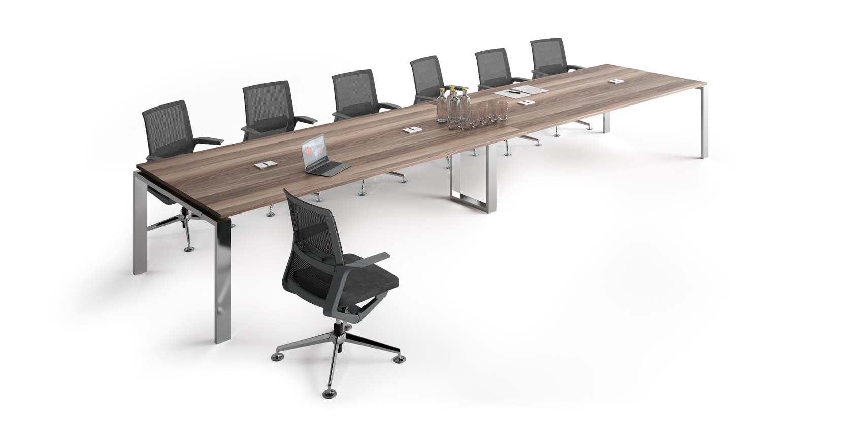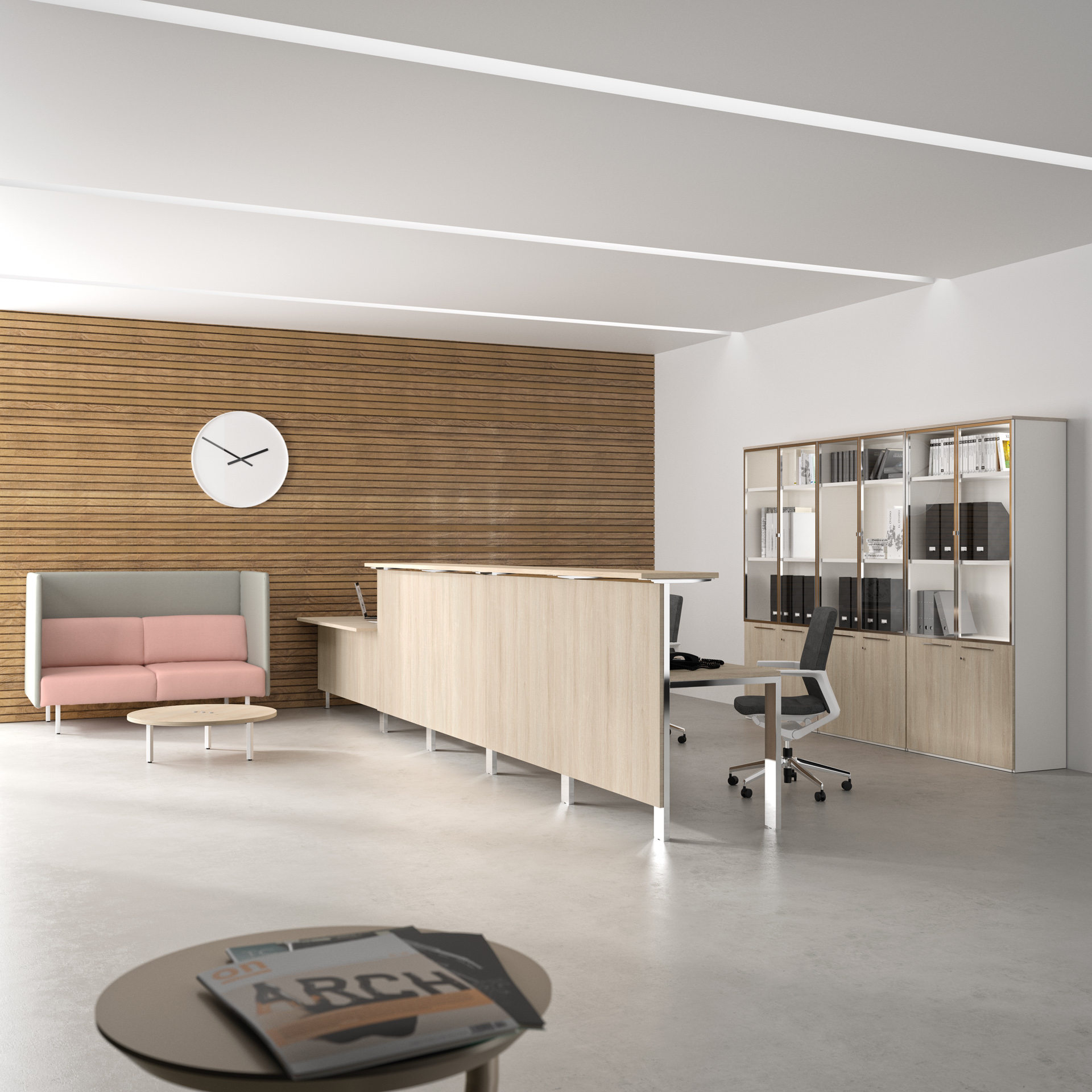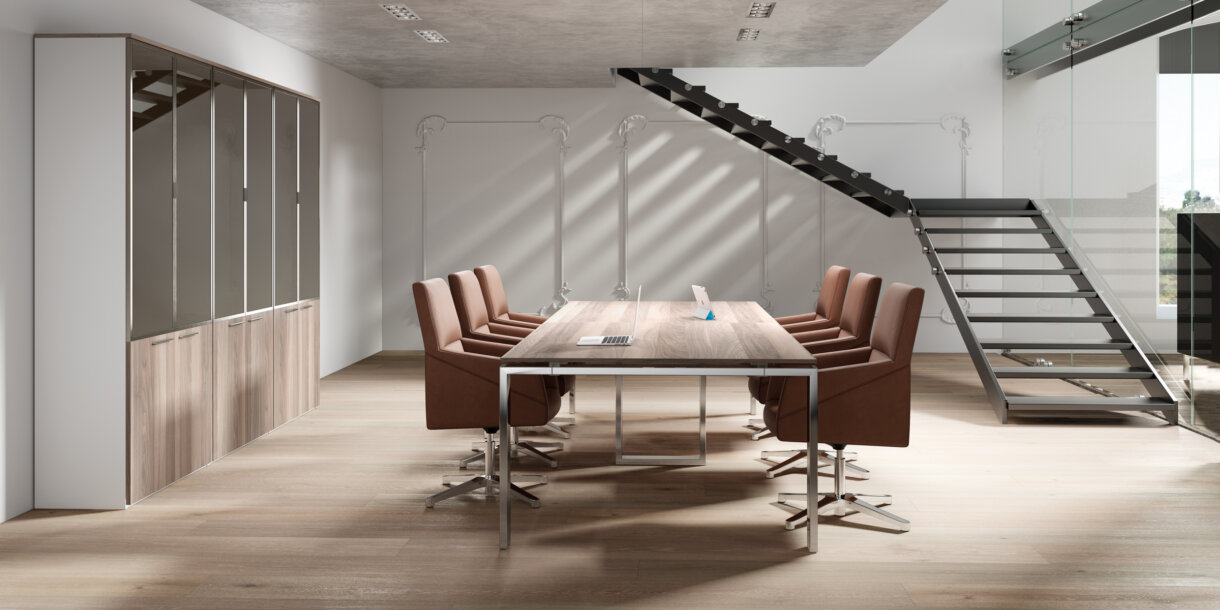 A chrome structure with melamine and glass boards and metallic cabinets and storage units are the materials that are used to create this collection of executive furniture, which can also be offered as managerial furniture.