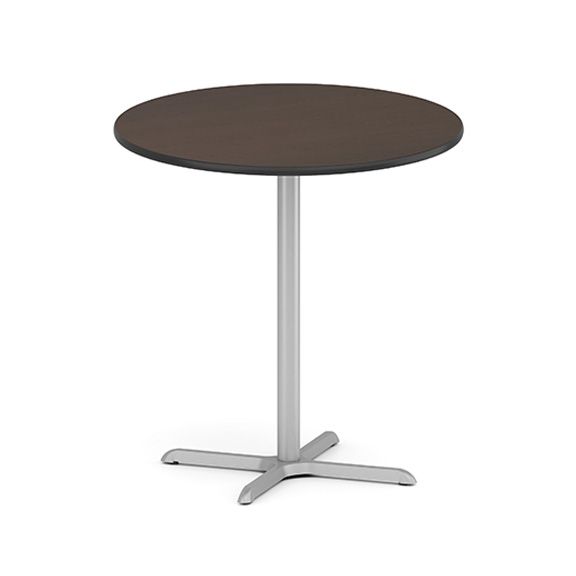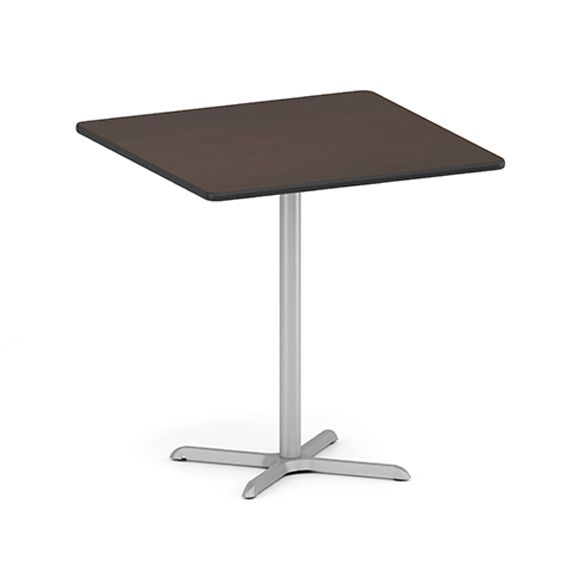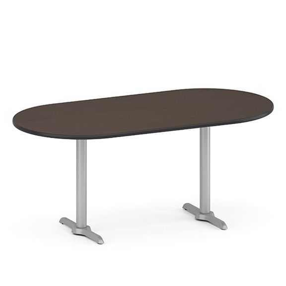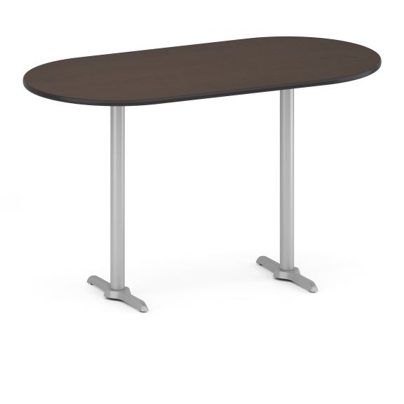 Uniquely designed for breakrooms, corporate café environments, and collaborative work areas | Chairs are heavy-duty steel construction | Unique trapezoid seat shape | Curved plywood back for comfort | 350 lb weight capacity | Tables are available in round, square or oval shapes in 2 heights: 30” and 42” | High pressure laminate tops with durable T-mold edging | Base includes height-adjustable floor glides | Power/data/USB port available for oval table