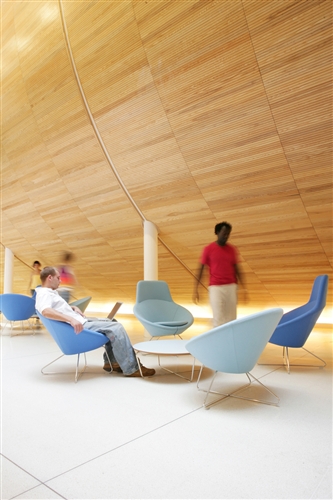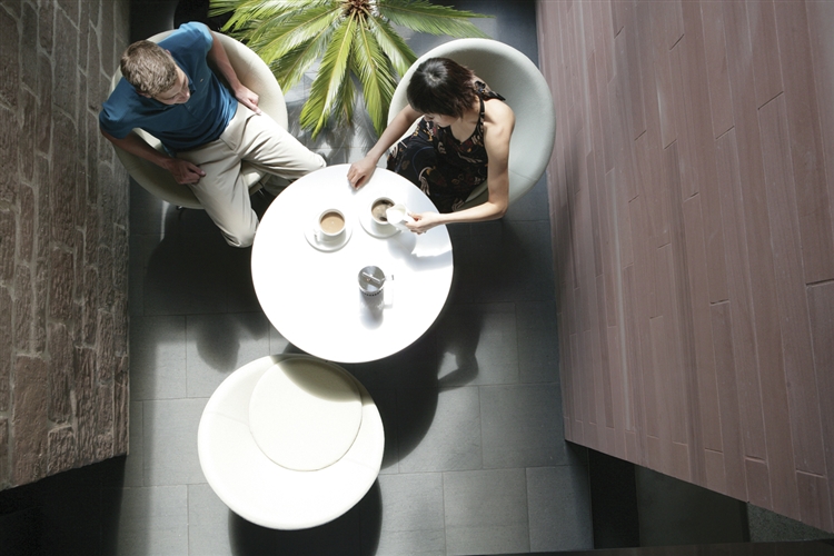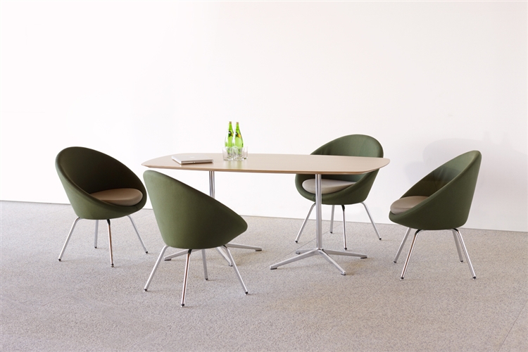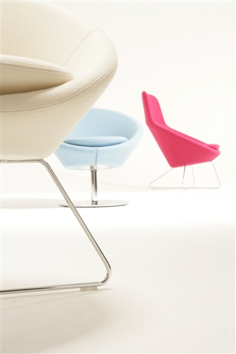 Conic’s shape and form provide excellent and inviting levels of comfort with an almost domestic appeal, complemented by a family of related low tables, for a myriad of uses and spaces.