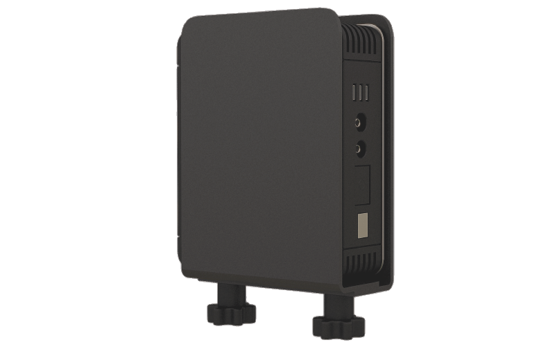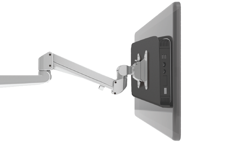 - Mounts between the monitor arm and monitor
