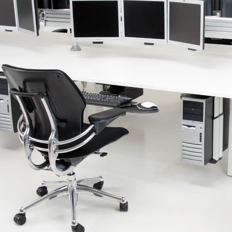 The Humanscale CPU555 is the sturdiest CPU holder on the market. While its heavy-duty construction will easily accommodate oversized CPUs, it is equally at home protecting mini units from workplace hazards.