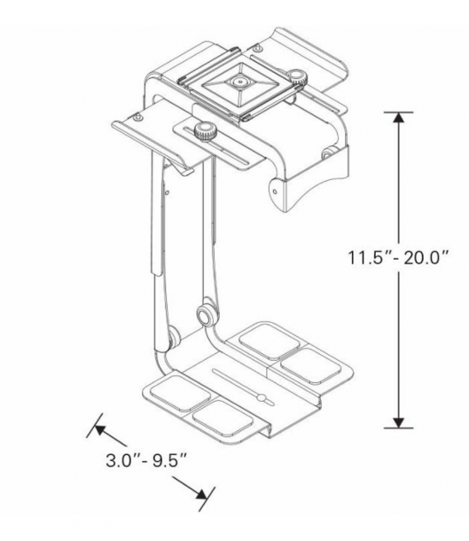 - Adjusts to fit CPUs 3" to 9.5" wide and 12" to 22" tall