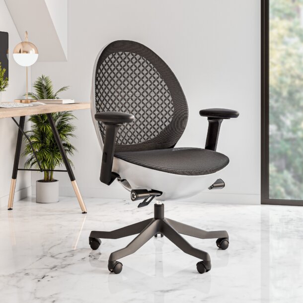 The Deco Lux Executive Chair has the ability to elevate any space effortlessly. This chair is famed for its unmatched luxury, comfortability, and unique ergonomic aesthetic, recognized as an integral piece of the design pallet. Crafted from the finest materials available like the elastic mesh back and seat offering you the perfect back support with fresh air comfort. The ergonomically positioned padded 3D arms that go up and down, sideways and front and back; the shell-shaped back which includes a reclining locking mechanism with tension control, and the ergonomic mesh seat provide the best seating experience. The structure delicately cradles the curves of your spine with integrated lumbar support, whereas the durable aluminum base rotates for ease of use with effortless mobility. The chair supports weights up to 285lbs. and is BIFMA Certified. Colors: Black, Taupe & White.