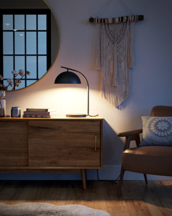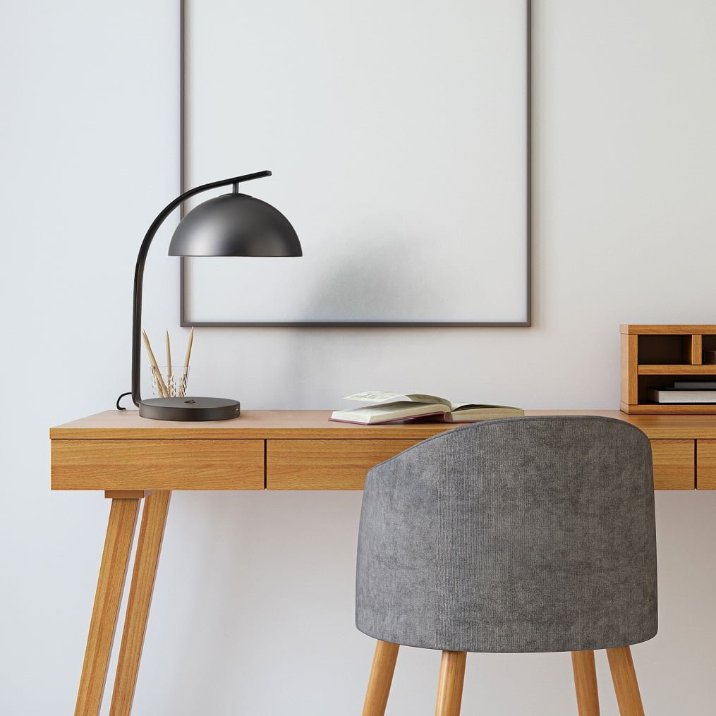 The Domus table lamp owes its inspired design to the Griffith Park Observatory for its timeless and modern dome shade. Ideal for bedside tables or home offices, directional lighting sheds light exactly where you need it and a USB port + power outlet keeps your important devices charged. Perfect for living room, bedroom, or home office.