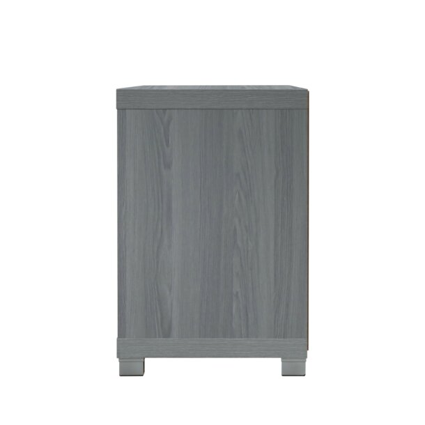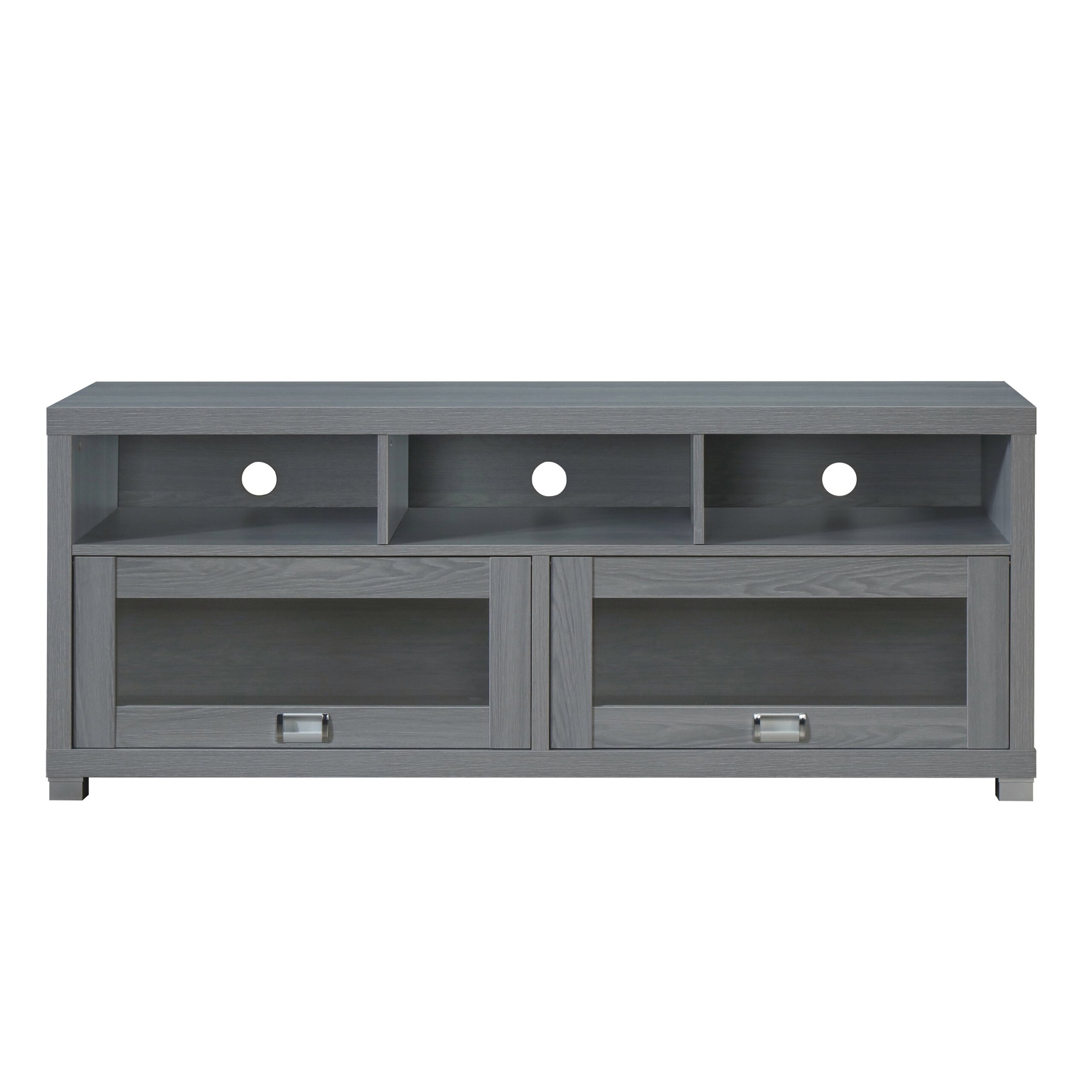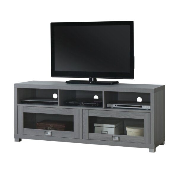 This contemporary Durbin TV Cabinet is designed to fit any bedroom, living, or family room. It includes two glass doors with storage space and three shelves for accessory storage. The Techni Mobili TV Cabinet is made of compressed wood that is more resistant to scratches. Color: Grey.
