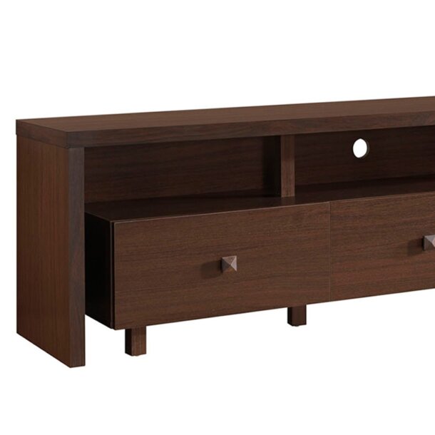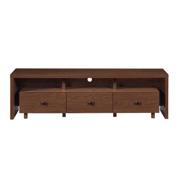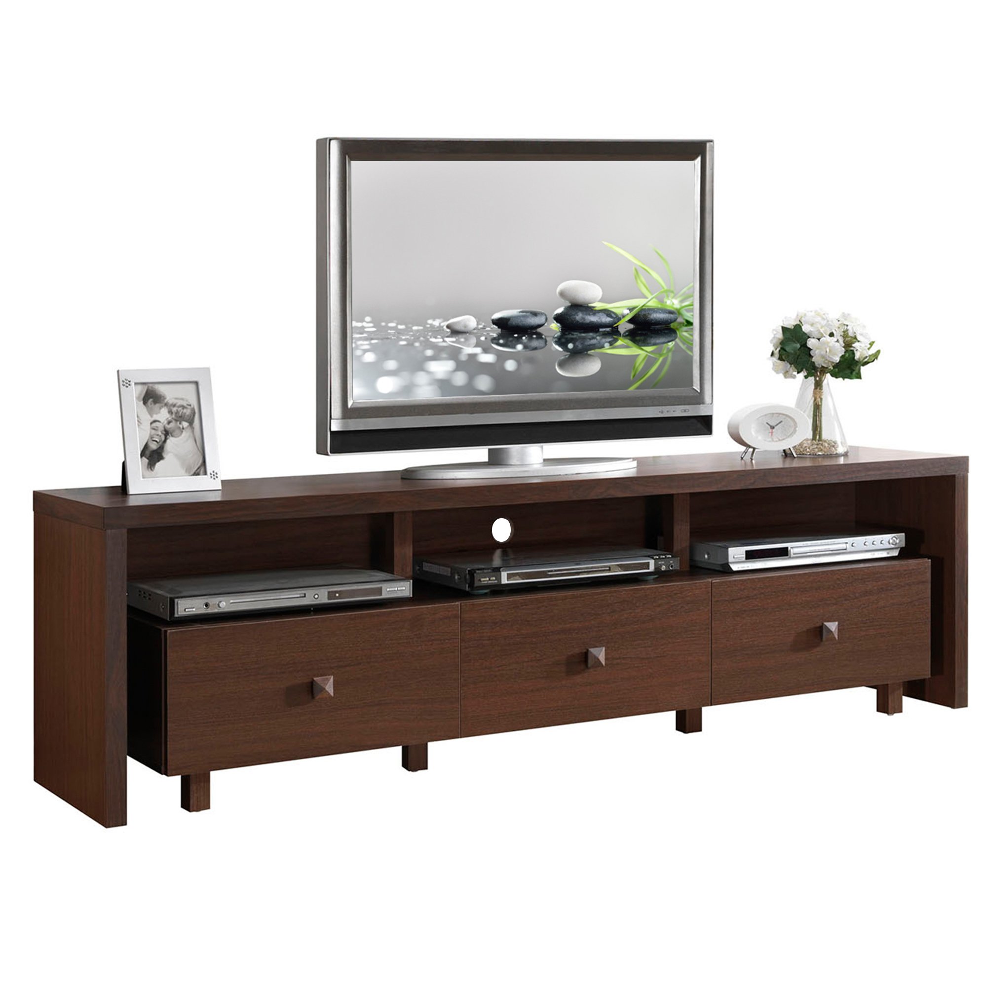 This contemporary and Elegant TV stand, for TVs up to 75″, is designed to fit any bedroom or family room. It includes three drawers and 3 shelves providing storage for your electronics and gaming accessories. Middle shelf has a back panel opening for cable management. The Techni Mobili TV cabinet is made of heavy duty compressed wood and laminate surface that is resistant to scratches. Important: Holds TV’s up to 75″ when TV is measure diagonally. Actual unit is 71″ wide but TV overhang on either side is suitable. Color: Hickory