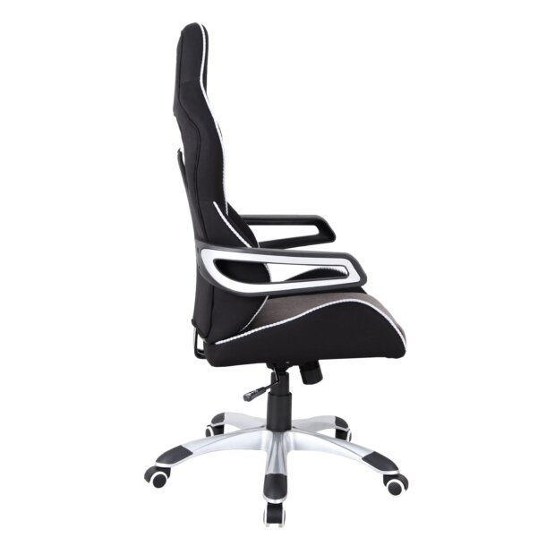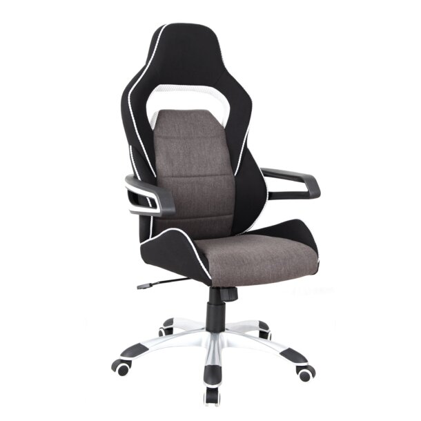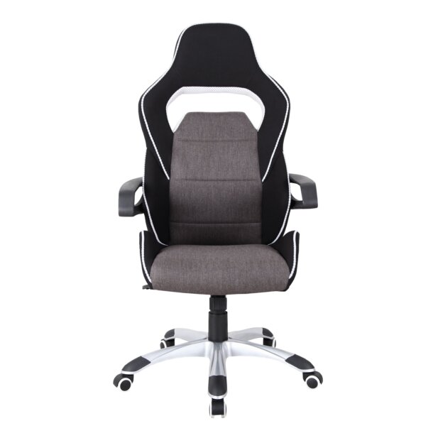 Bring style and function to your place with Ergonomic Upholstered Racing Style Home & Office Chair. Put the fun in functional with this racing-style chair. It is made with rich fabric and contoured segment padding to ensure your comfort and convenience. It comes with impressive design and features built to emulate an ergonomic racing style seat which creates a modern stylish look without sacrificing functionality. From pneumatic height adjustment mechanism, non-marking casters to the durable 5-star nylon base, designed with the black frame, sweetly curved supports on the back, tilt mechanism and tension control, noticeable craftsmanship with attractive fixed armrests, we got you covered. This chair provides high-performance comfort when used during longer working days. It comes with 2-year limited warranty and weight support up to 200 lbs. Color: Grey
