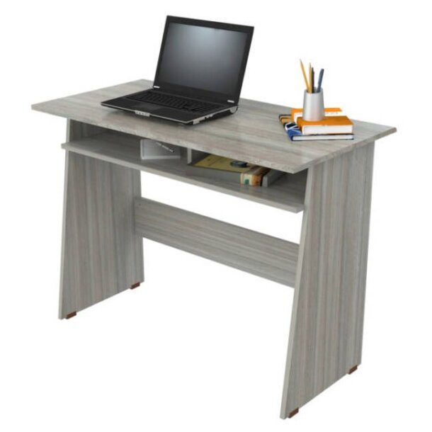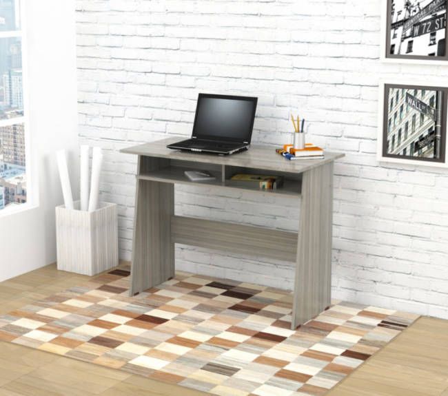 This writing desk is ideal for small spaces yet has adequate room to display your laptop, tablet and organize your supplies. It features open storage shelves underneath the writing surface for additional storage. The unit sits on four square plastic sliders for easy mobility when cleaning or rearranging your room décor.