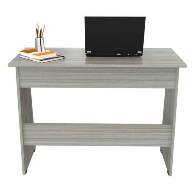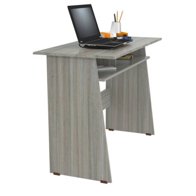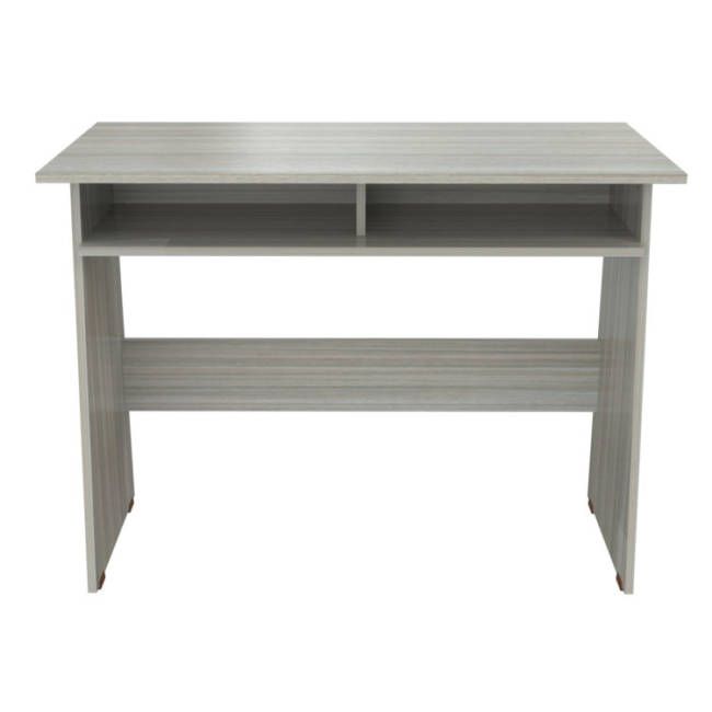 This writing desk is ideal for small spaces yet has adequate room to display your laptop, tablet and organize your supplies. It features open storage shelves underneath the writing surface for additional storage. The unit sits on four square plastic sliders for easy mobility when cleaning or rearranging your room décor.
