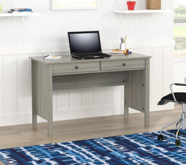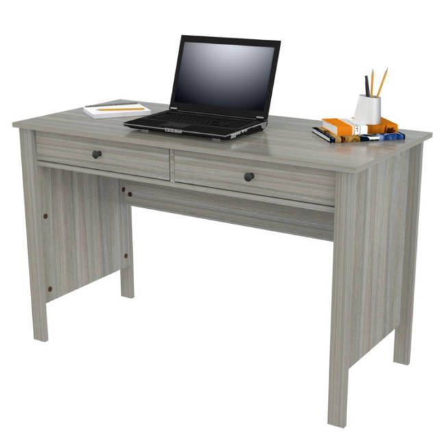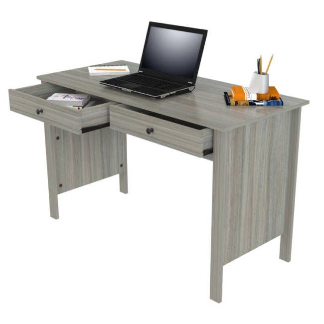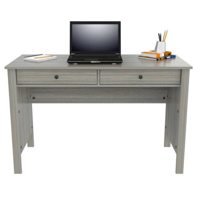 “Raspect” writing desk by INVAL® is ideal where space is at a premium. The size and style of the desk permits you to create a small home office without taking away from the appearance of your home décor. This traditional style writing desk is constructed from manufactured wood in “Smoke Oak” melamine laminate which is stain, heat and scratch resistant. The desk characteristics provide ample work space to house your laptop or tablet and all your documents. The desk includes two (2) box drawers with metal slides and brushed metal knobs for storage of your pens, pencils and other office supplies.