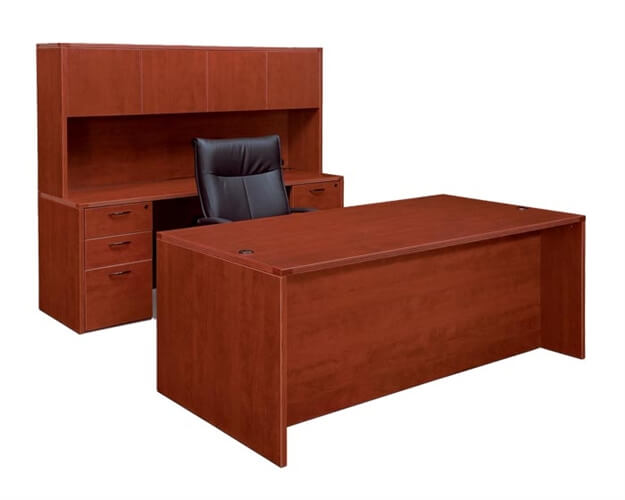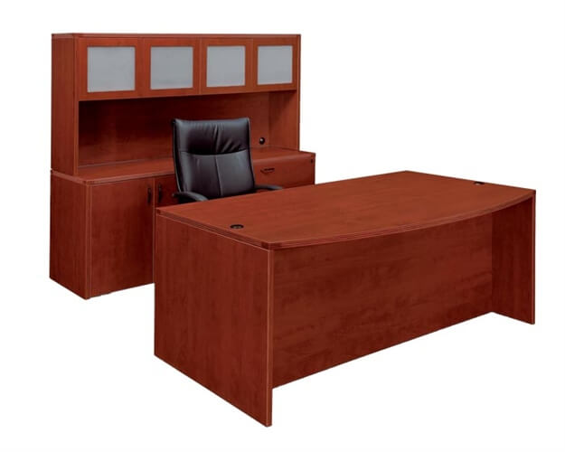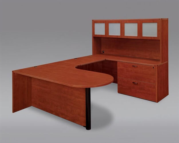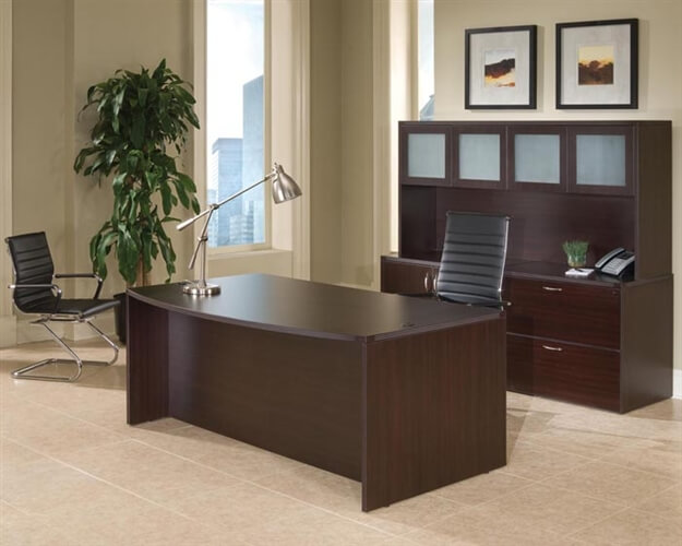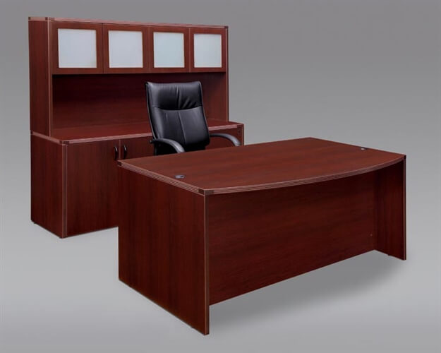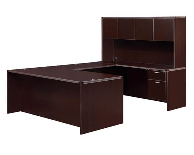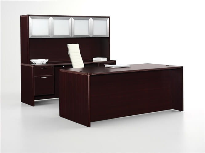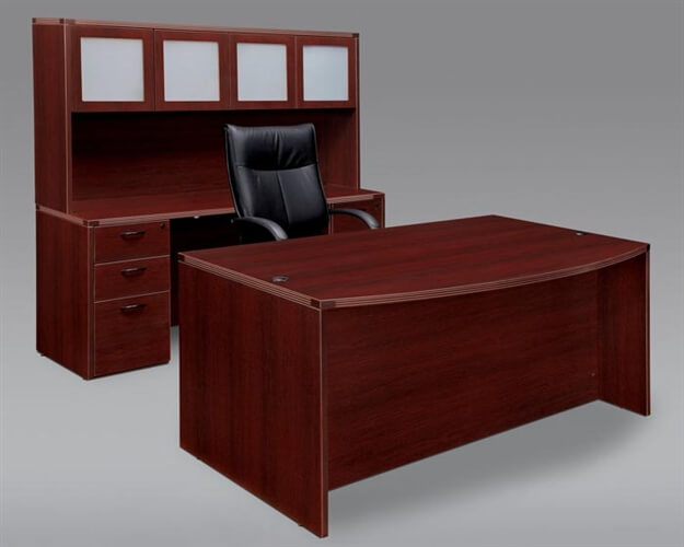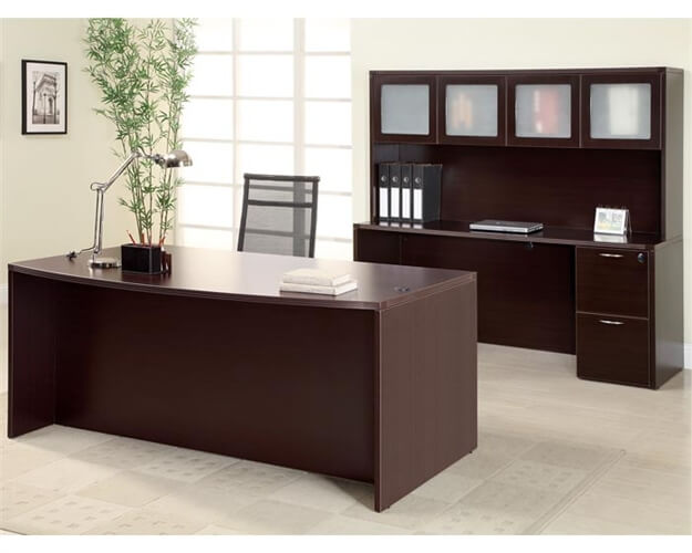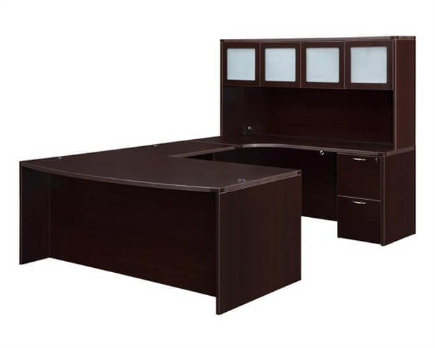 Modern simplicity best describes the contemporary design elements of the Fairplex 7004 Laminate Collection. Finished in a concentrated Mocha finish with matte Black hardware, frosted-glass Overhead Storage doors, and reeded-edge tops, this collection radiates effortless style. Most pieces ship flat-packed and require some assembly so even the most modest of shoppers can achieve the look of an expensive, contemporary office setting without breaking the bank.