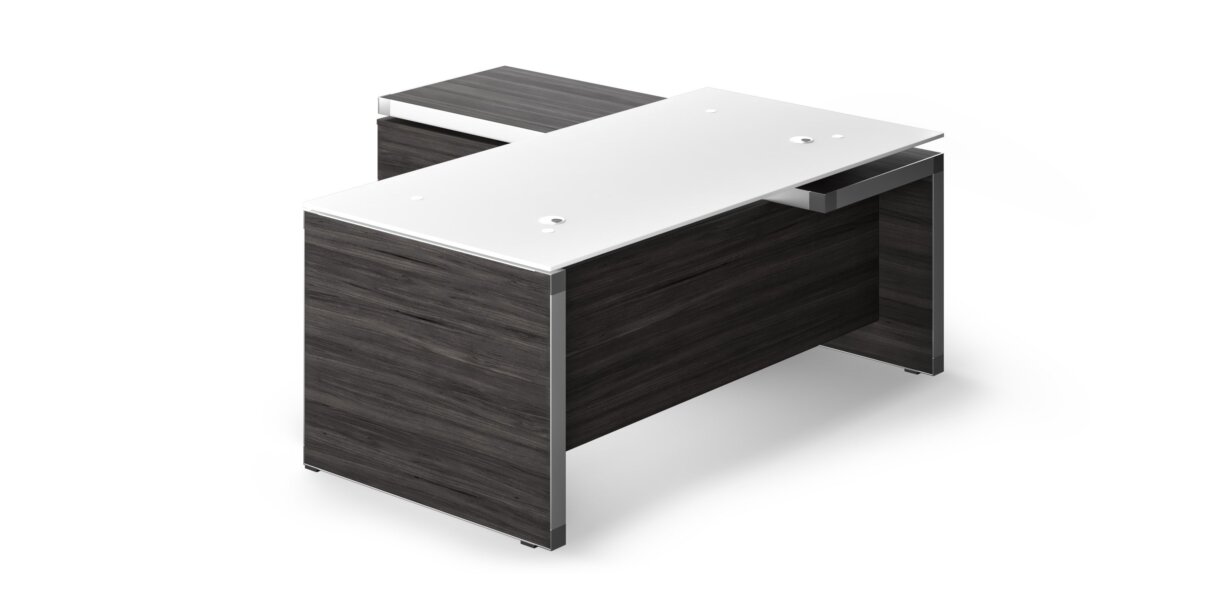 - Available in White Glass or Grey Laminate Worksurface