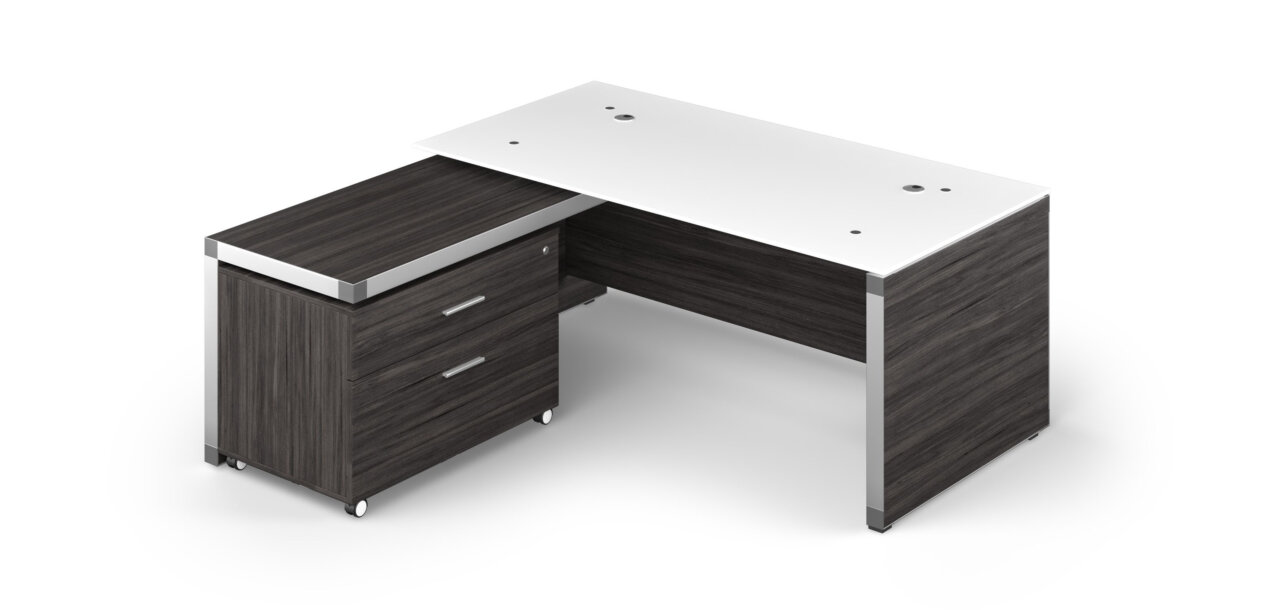 This combo pricing includes Forza L Shape Executive Glass Desk and Moveable Cabinet.