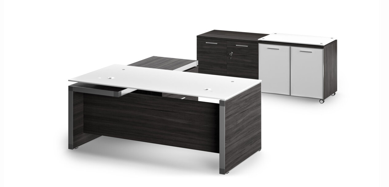 Forza by Office/ is the pinnacle of when budget and design are used to create an office furniture collection. This Forza collection features glass, brushed aluminum and laminate all in synchronization while attaining a budget price point.