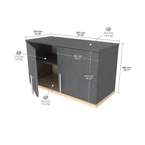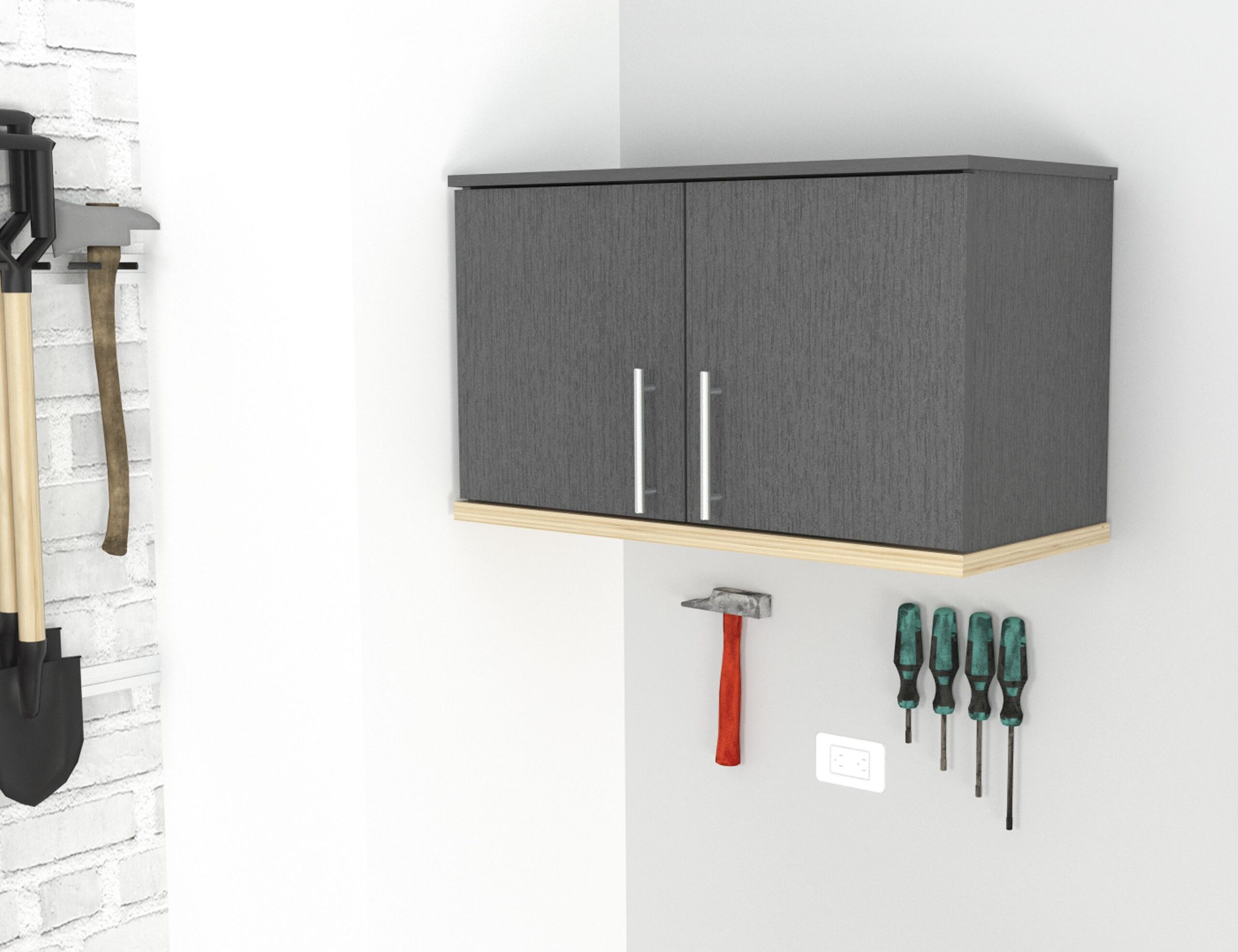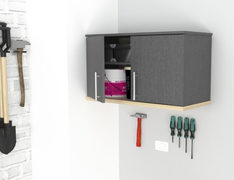 Kratos™ Series Garage Storage Cabinet by Inval®, finished in a rich “Kromo/Maple” laminates in durable melamine which is stain, heat and scratch resistant. Constructed from industrial grade manufactured wood. This wall mounted cabinet features two (2) doors mounted with European style concealed hinges and embellished with large brushed metal handles plus adjustable interior shelves that offer ample storage space. This cabinet is just the right size to provide excellent storage.