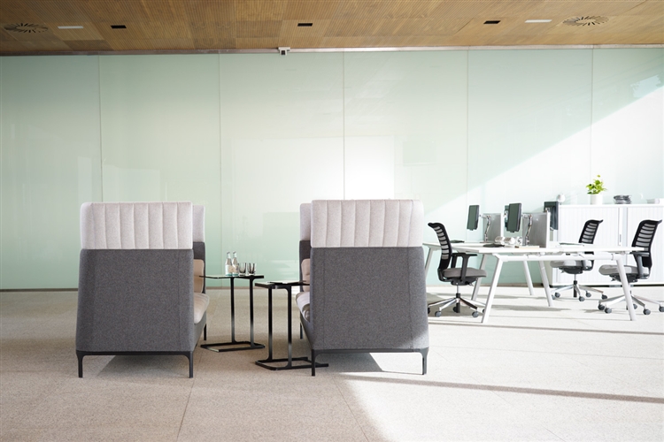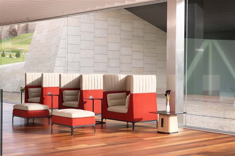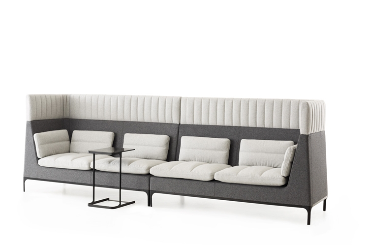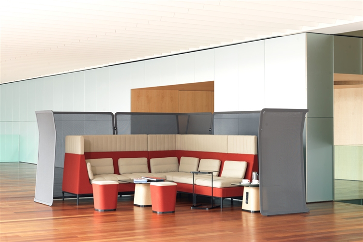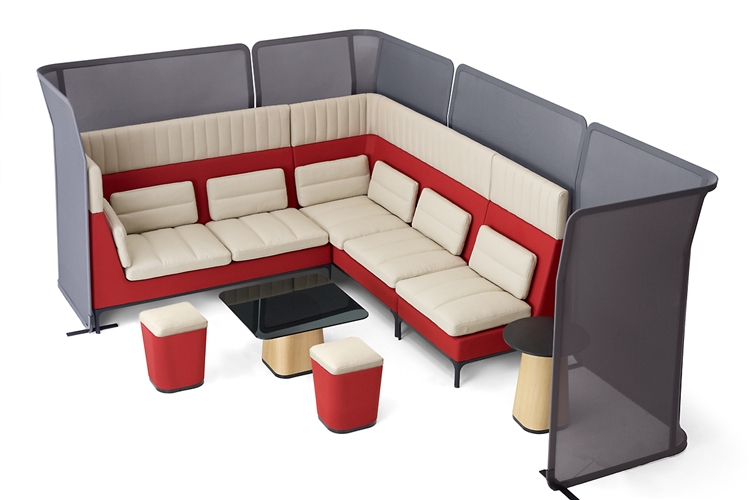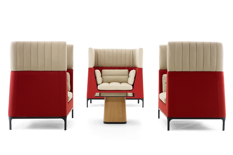 Haven redefines the modular upholstery system with sofas, stools, tables and screens. The high back of the sofa provides excellent personal privacy, a haven, within a busy world. A place for personal contemplation or interaction amongst a team. The supporting elements give you a complete working solution.