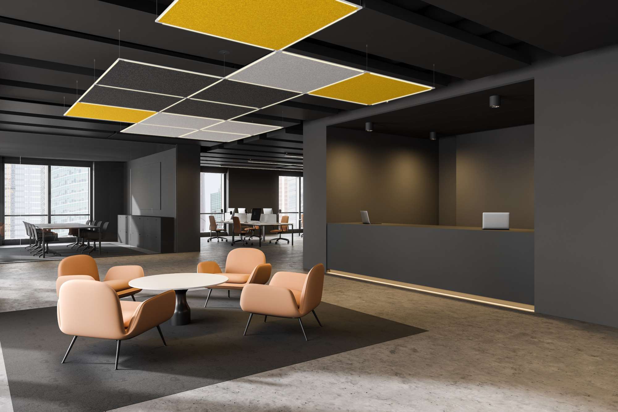 Compatible with various Z-Bar Pendant models, Koncept’s line of horizontal acoustic panels are an attractive solution to sound absorption. These can be mounted flat onto each compatible pendant.