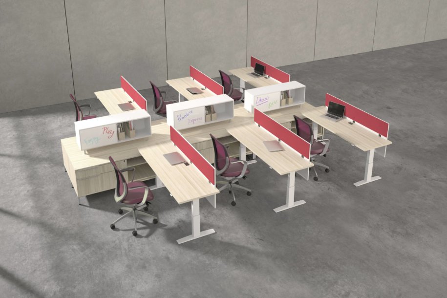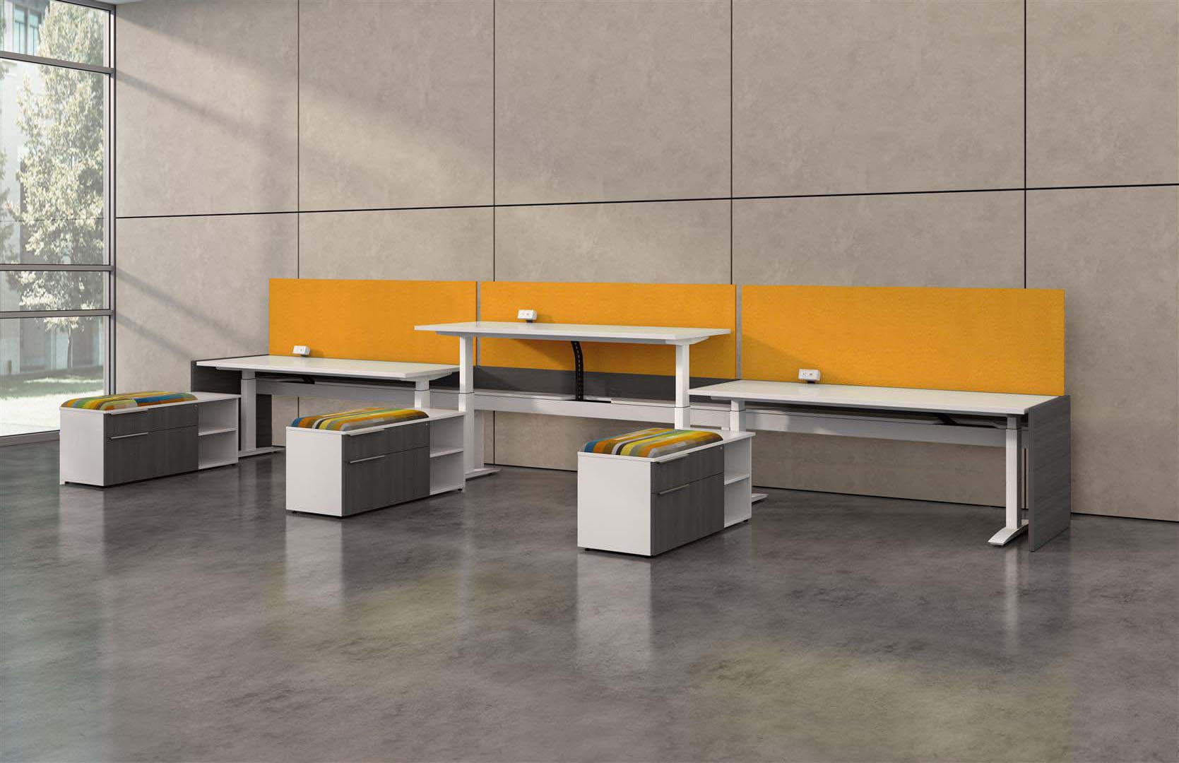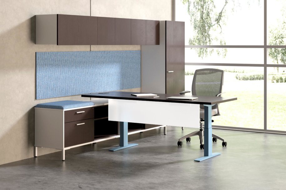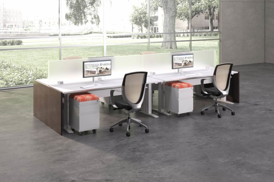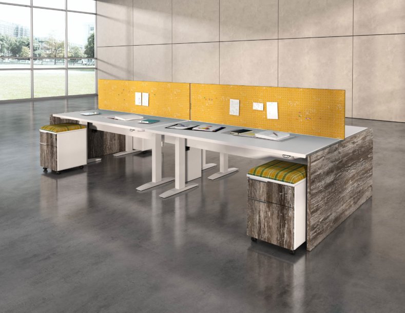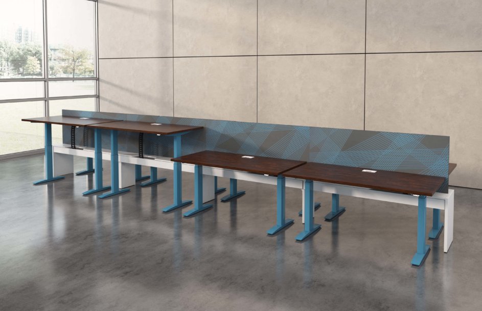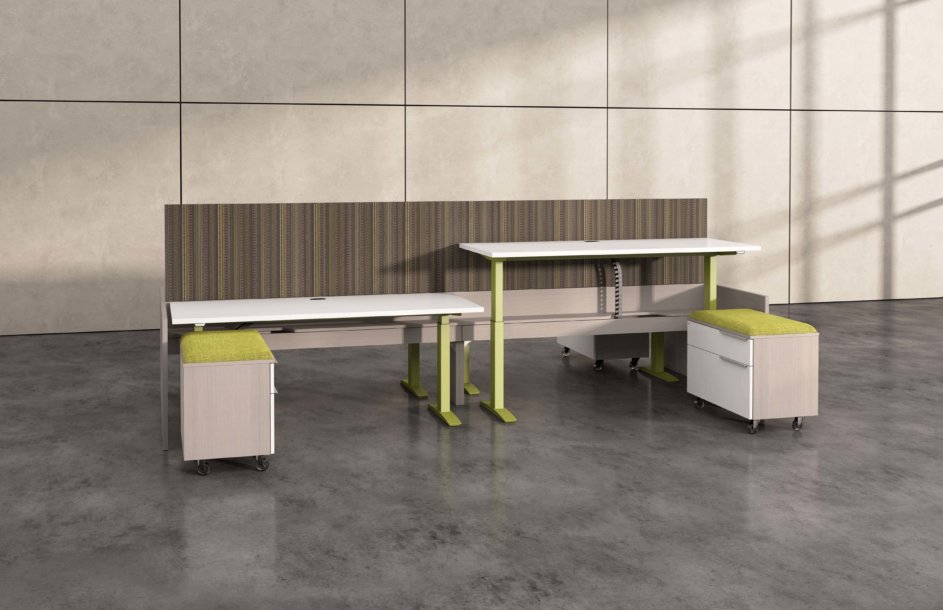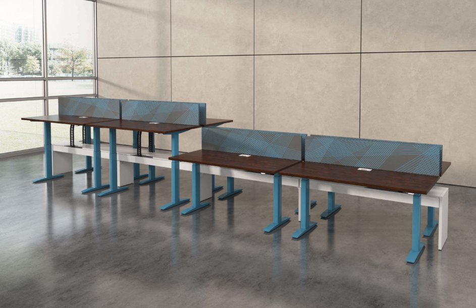 Hover from DeskMakers is a complete solution for adjustable-height worksurfaces and can be easily integrated into all of DeskMakers casegoods and TeamWorx desking lines, as well as stand-alone tables. Stay connected with power distribution and cable management for adjustable-height benching environments. Hover bases are made in the USA and are offered in 12 finish options.