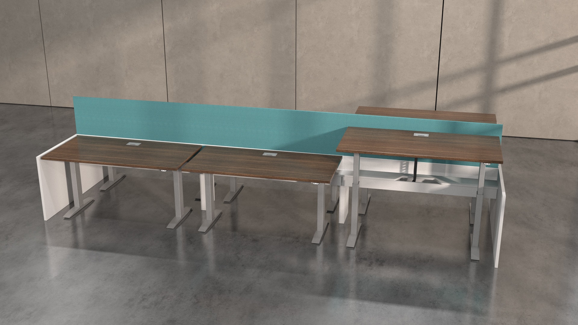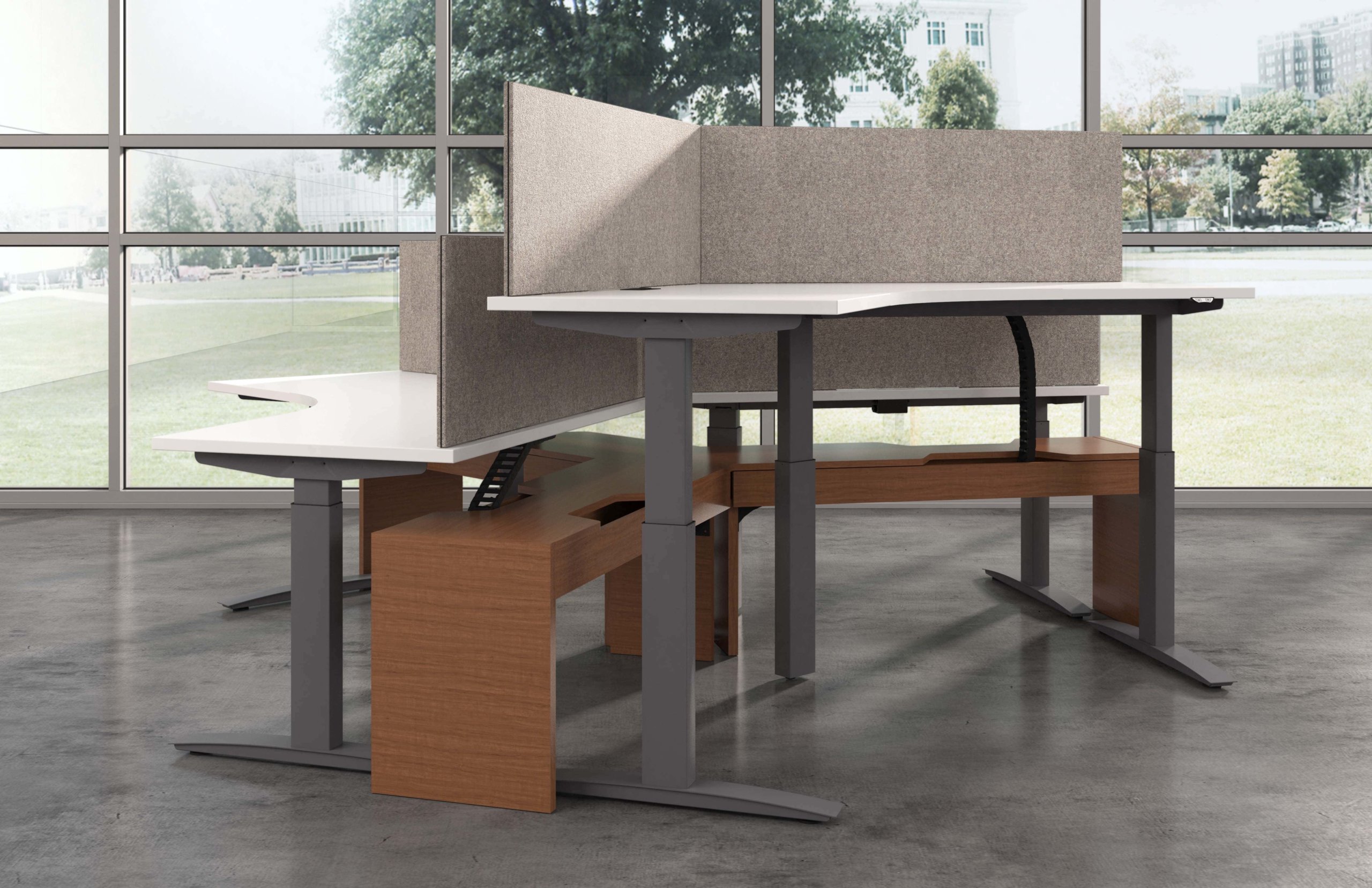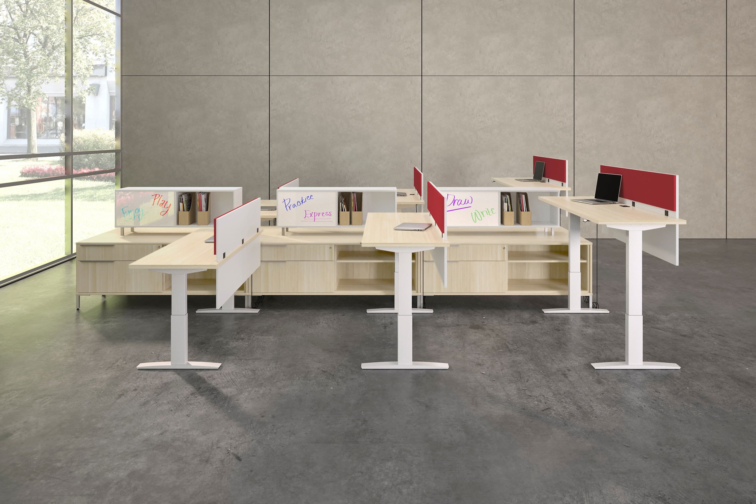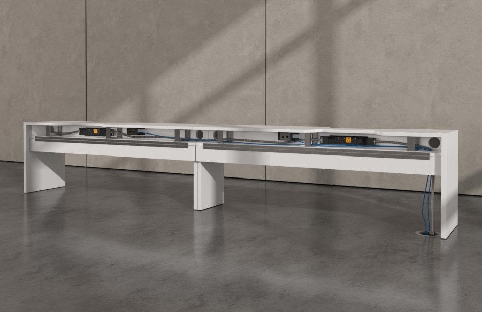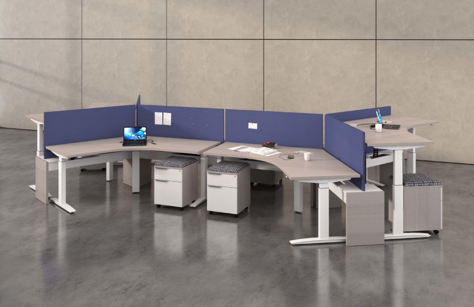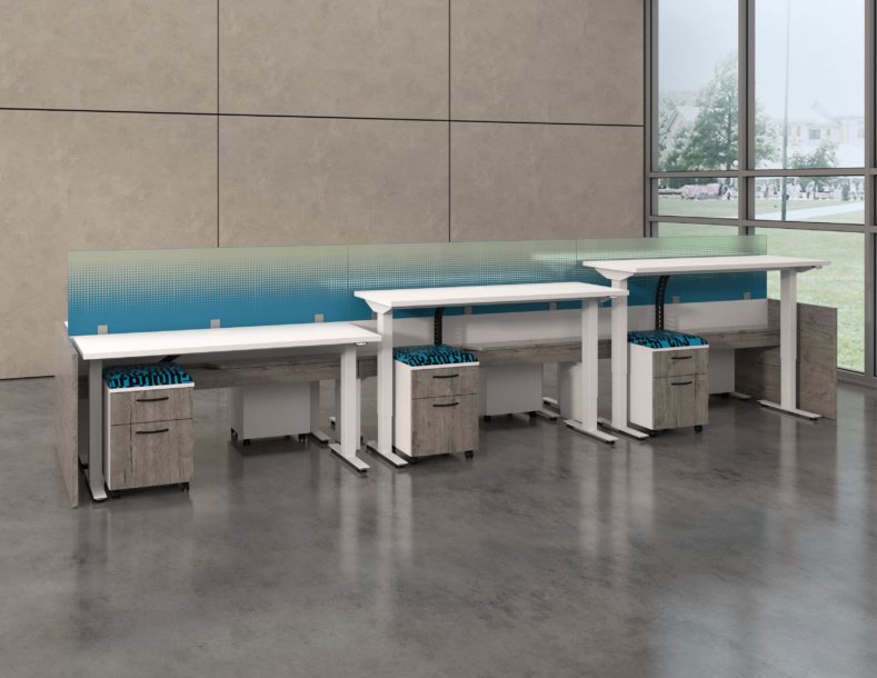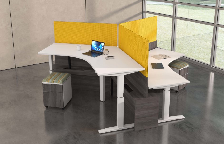 Hover from DeskMakers is a complete solution for adjustable-height worksurfaces and can be easily integrated into all of DeskMakers casegoods and TeamWorx desking lines, as well as stand-alone tables. Stay connected with power distribution and cable management for adjustable-height benching environments. Hover bases are made in the USA and are offered in 12 finish options.