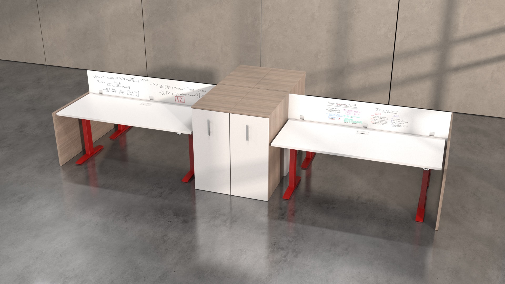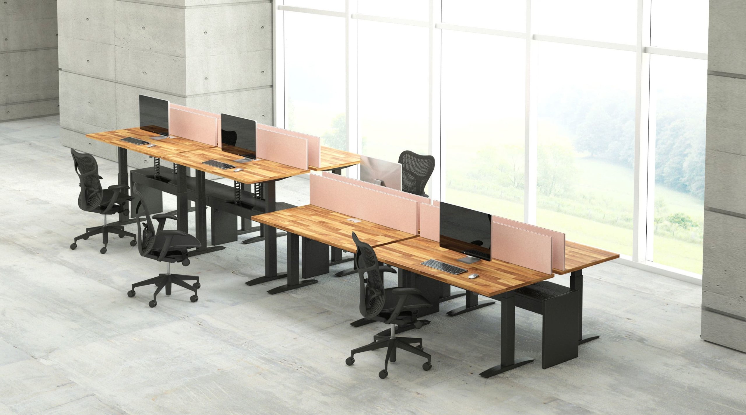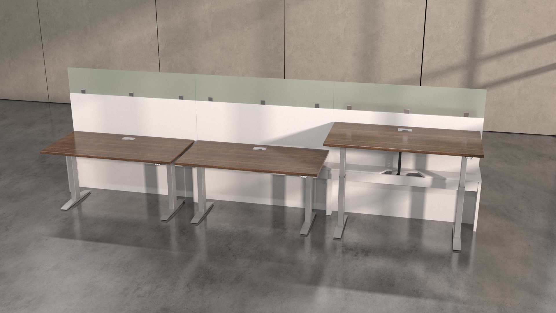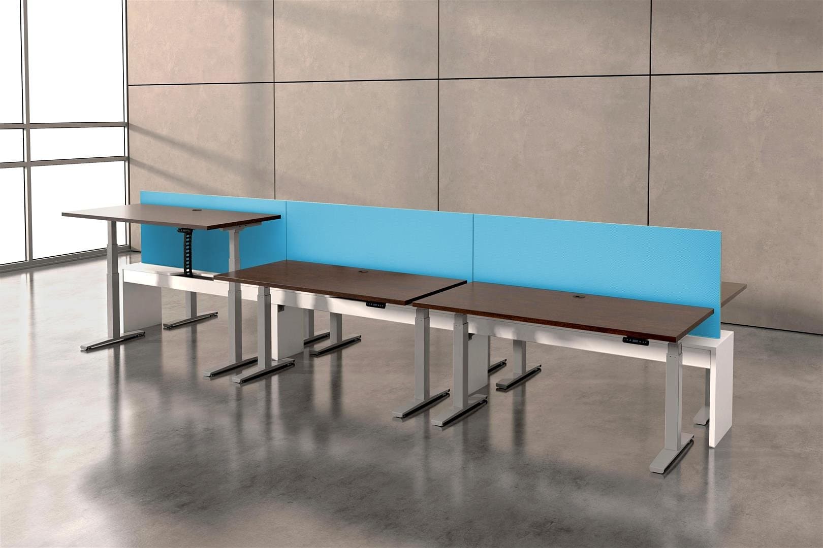 Hover from DeskMakers is a complete solution for adjustable-height worksurfaces and can be easily integrated into all of DeskMakers casegoods and TeamWorx desking lines, as well as stand-alone tables. Stay connected with power distribution and cable management for adjustable-height benching environments. Hover bases are made in the USA and are offered in 12 finish options.