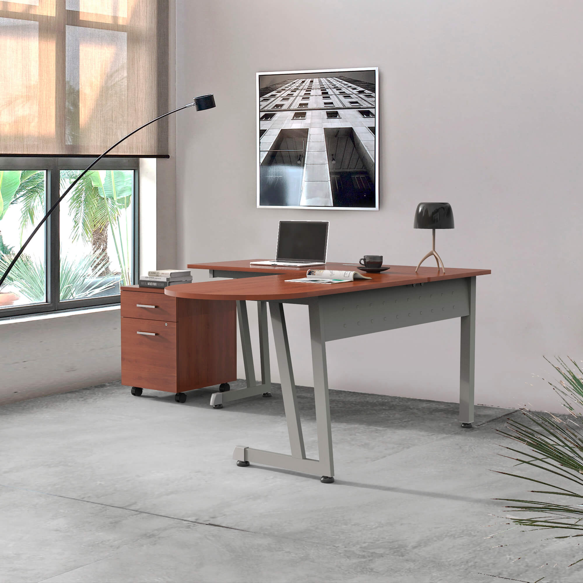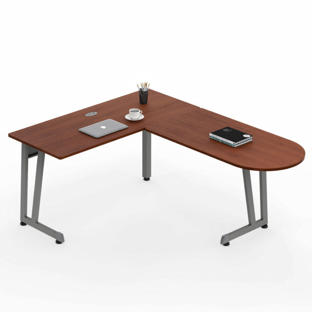 - Easy to assembly, strong metal gray frame and thermofused laminated wood top in Cherry finish