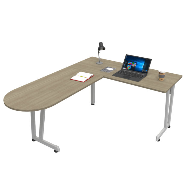 - L-Shaped Corner Home Office Desk, Computer Desk with Metal and Wood