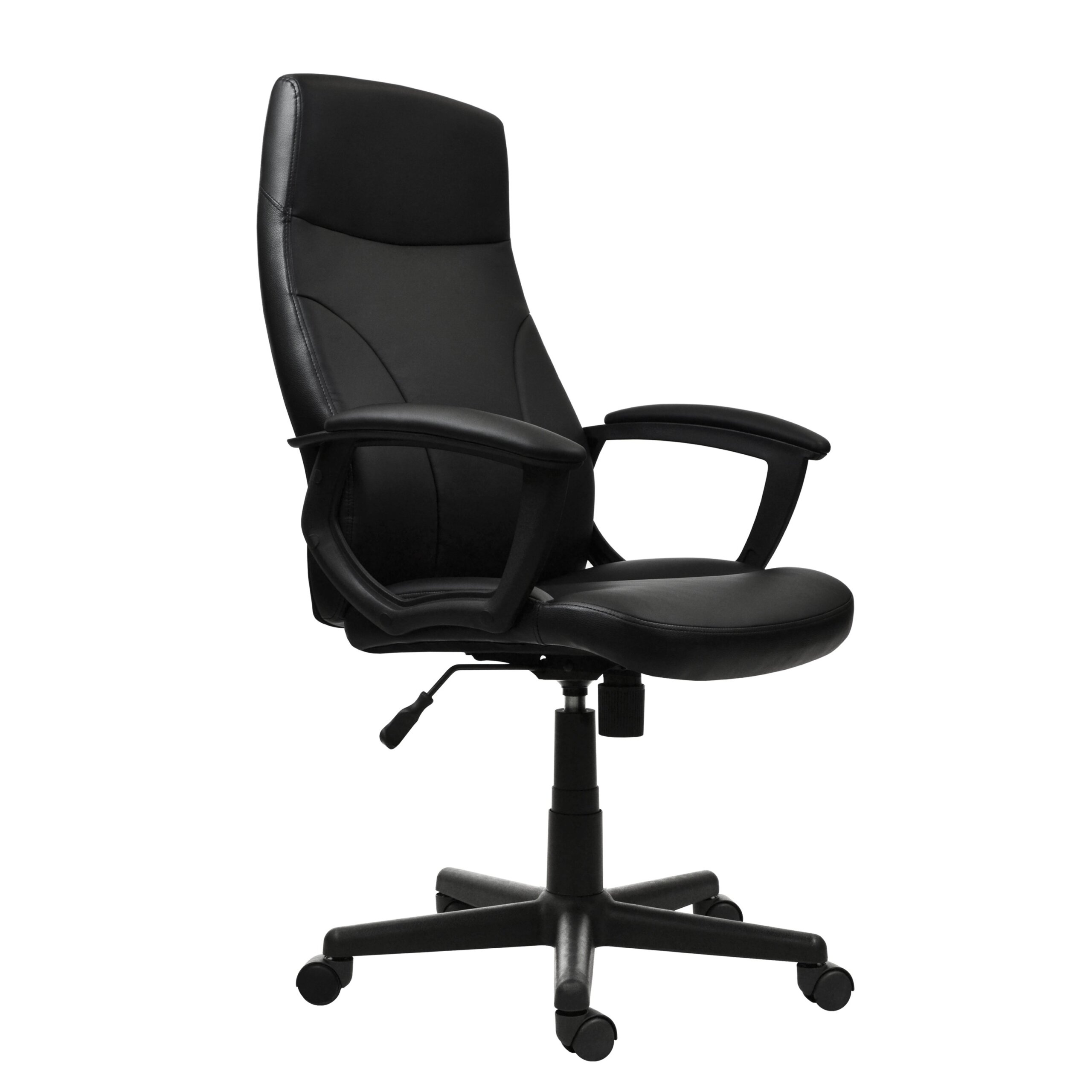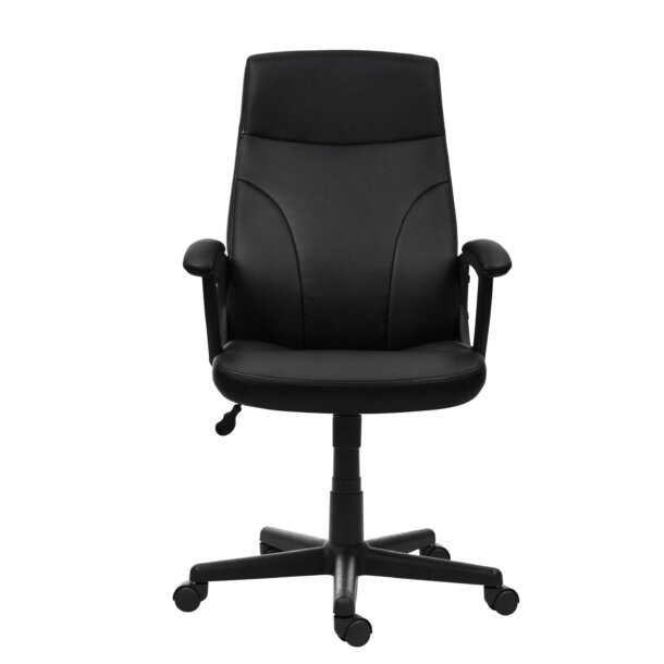 This comfortable Medium Back Manager Chair has a distinct look with its curved ergonomic back design, made of Techniflex upholstery. It comes with a 5 star nylon base with nylon dual casters, padded armrest. It features a pneumatic seat height adjustment and locking tilt with tension control. The mid-back design makes it a perfect desk chair especially for smaller work spaces, while still maintaining an elegant look to it; this modern chair comfortably fits users up to 220 Lbs. Color: Black