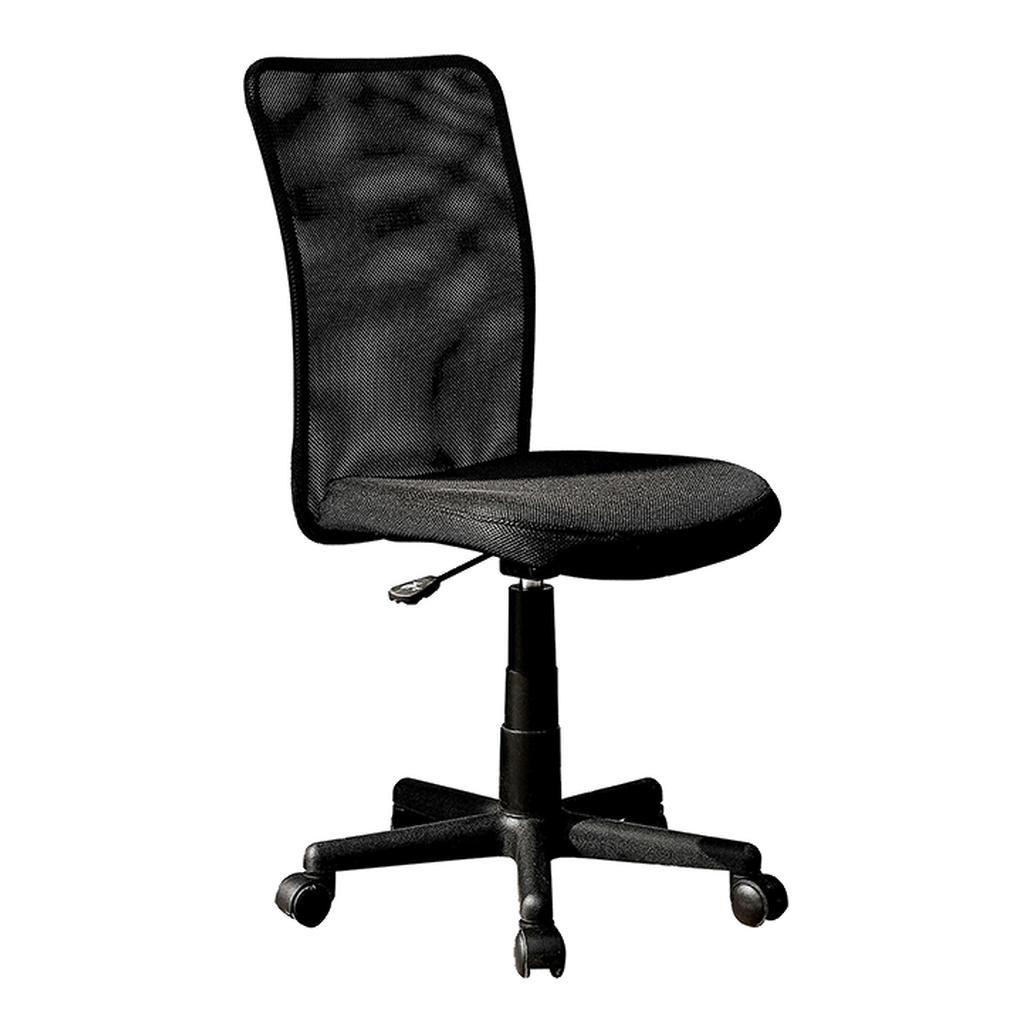 The Mesh Chair features a breathable mesh back support, a contoured fabric seat cushion, and a pneumatic seat height adjustment lever that provides a 4.5 inch seat height range, Dual wheel non-marking casters and a 5-star nylon base for a durable, stable mobility. Fits people up to 150 Lbs. It is both lightweight and compact in size. Color: Black.