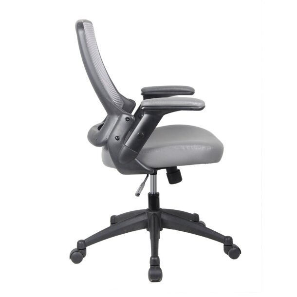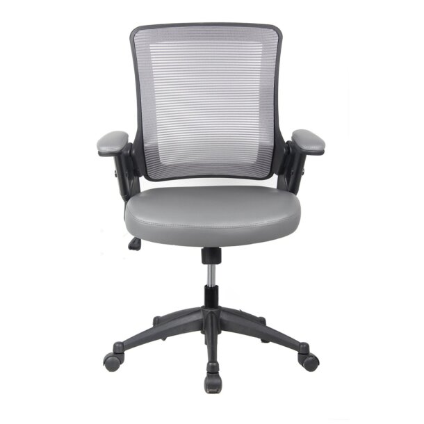 The Task Chair is fun, lightweight, and brings a modern look to any work environment. It features a breathable mesh mid-back & TechniFlex upholstered padded arms & seat. The pneumatic seat height adjustment and a back with a tilt tension control knob will keep you comfortable during those long working hours. The padded armrest can be height adjusted to fit under a tabletop. The durable nylon base sits atop non-marking casters. The chair holds up to 220 Lbs. Color: Brown & Grey.