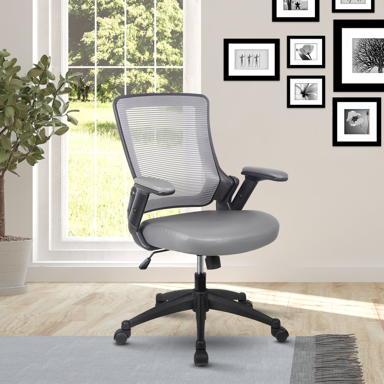 The Task Chair is fun, lightweight, and brings a modern look to any work environment. It features a breathable mesh mid-back & TechniFlex upholstered padded arms & seat. The pneumatic seat height adjustment and a back with a tilt tension control knob will keep you comfortable during those long working hours. The padded armrest can be height adjusted to fit under a tabletop. The durable nylon base sits atop non-marking casters. The chair holds up to 220 Lbs. Color: Brown & Grey.