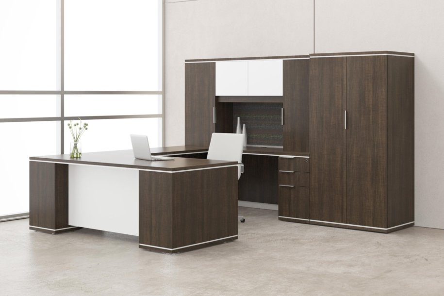 The Milano Collection combines European styling with an extensive array of finish, edge, and material options. It is available with PVC, 3/8” wood, and 1-1/8” wood edges, and with a choice of a silver metallic, black, or white reveal lines below tops and on bases.