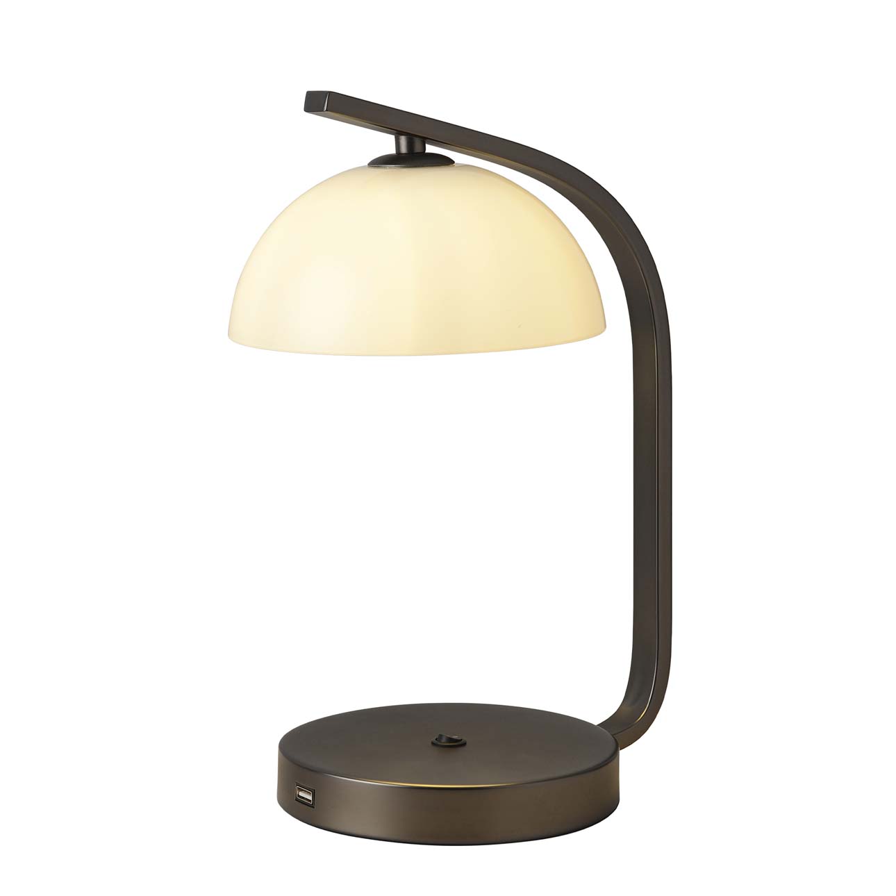 The Domus table lamp owes its inspired design to the Griffith Park Observatory for its timeless and modern dome shade. Ideal for bedside tables or home offices, directional lighting sheds light exactly where you need it and a USB port keeps your important devices charged. Perfect for the library, study room, bedroom or home office.