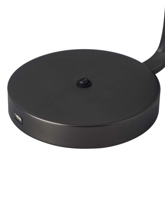 - A convenient USB charging port can be found at the base of this modern table lamp to keep all your important devices charge
